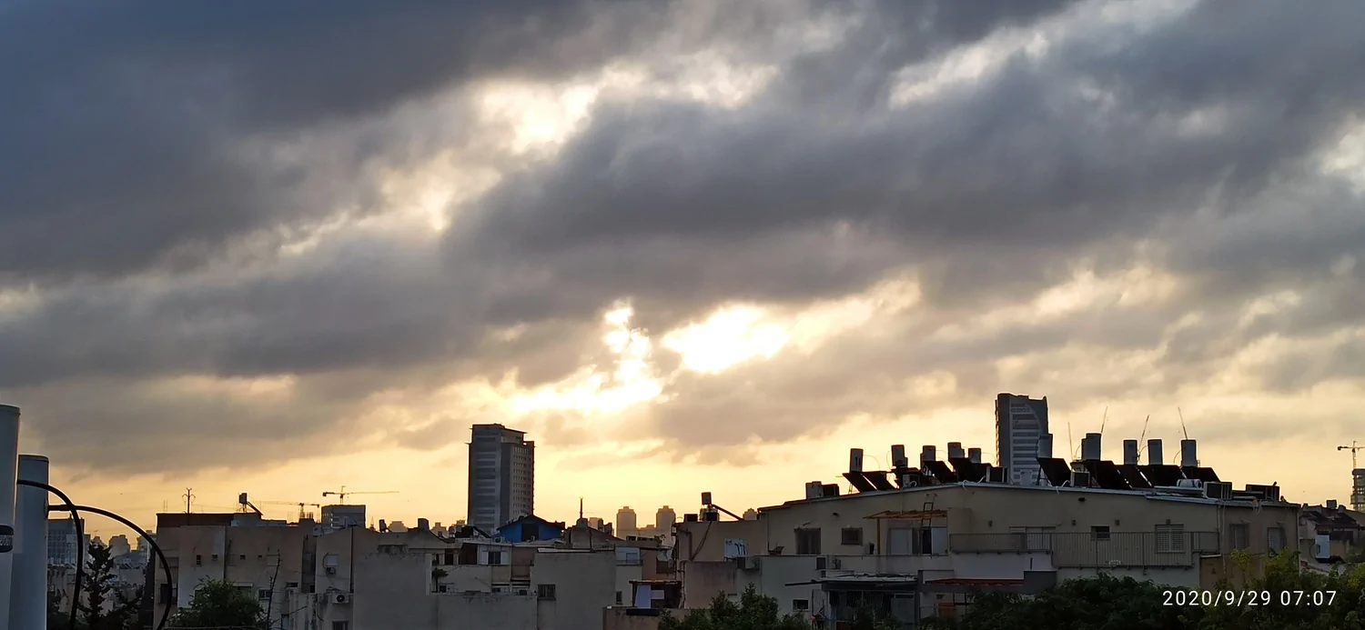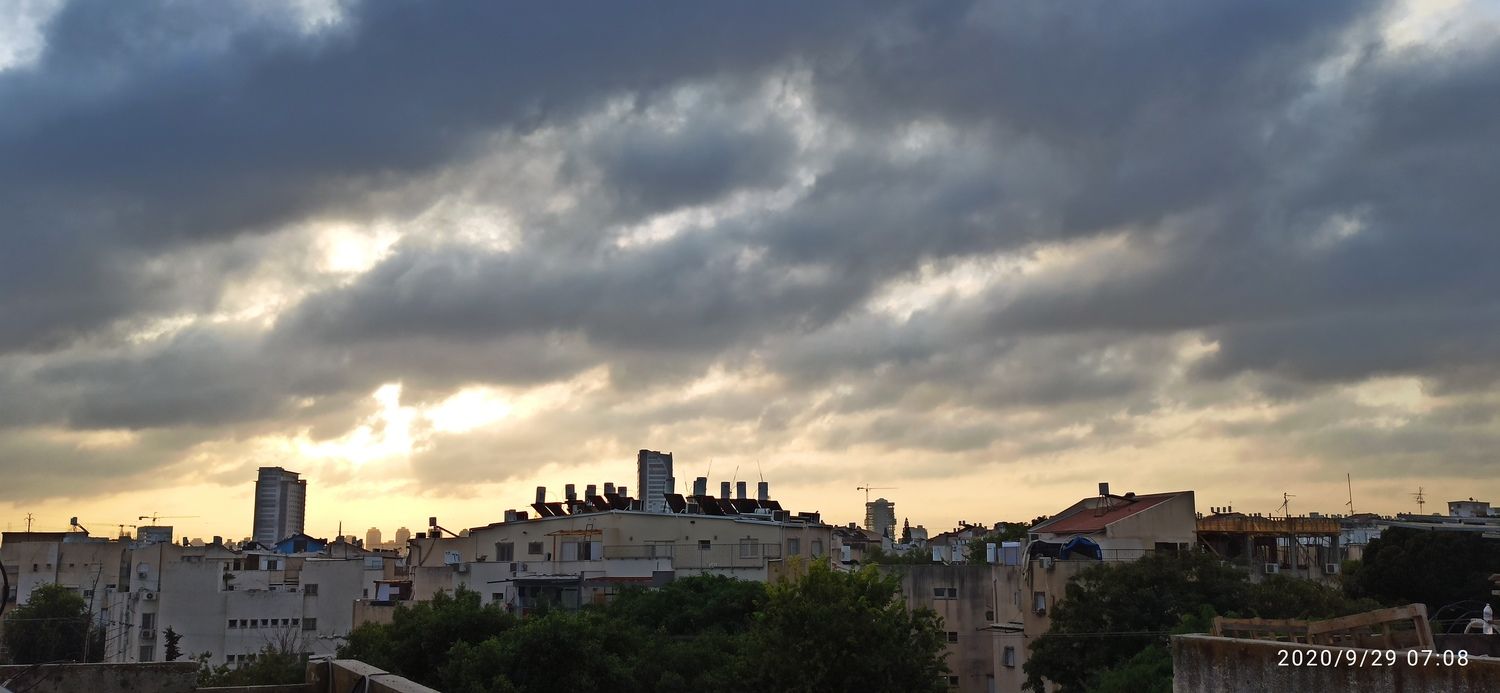 כעת מעונן מאוד בעננות בוקר, מתחיל יותר חם מאשר אתמול- 25.3 (לעומת 21.3 אתמול בשעה זו).