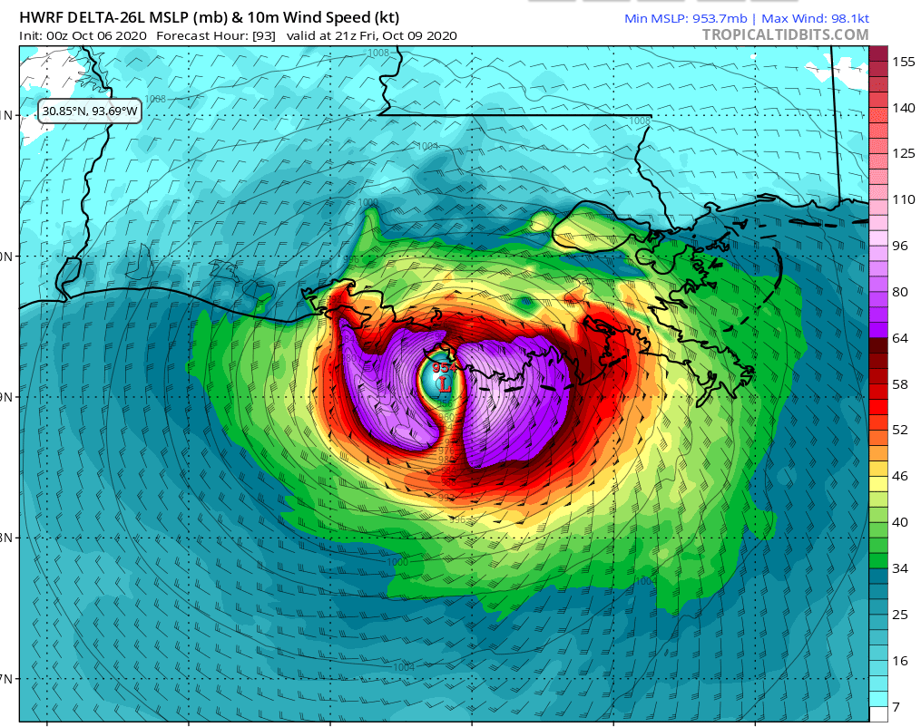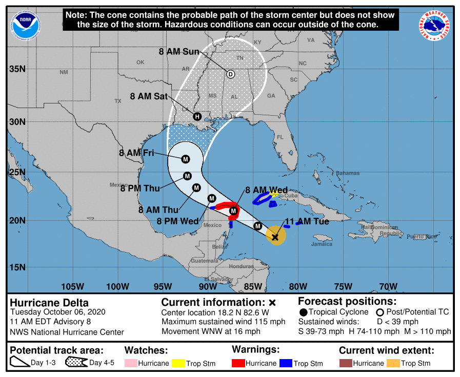 דלתא כבר הוריקן בקטגוריה 1 וממשיכה להתחזק בקצב מאוד גבוה, היא תעשה לנדפול ראשון חזק מאוד במקסיקו ועוד אחד בארצות הברית מעט חלש יותר (עקב גזירת רוח, לחות נמוכה ומים קרירים יותר בצפון מפרץ מקסיקו).