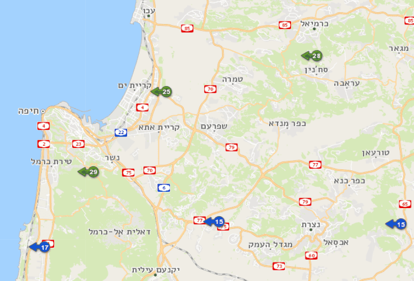 - רואים גם במפת העומסים שישנם פקקי תנועה גדולים מאוד באזור נוף הגליל רועי ס