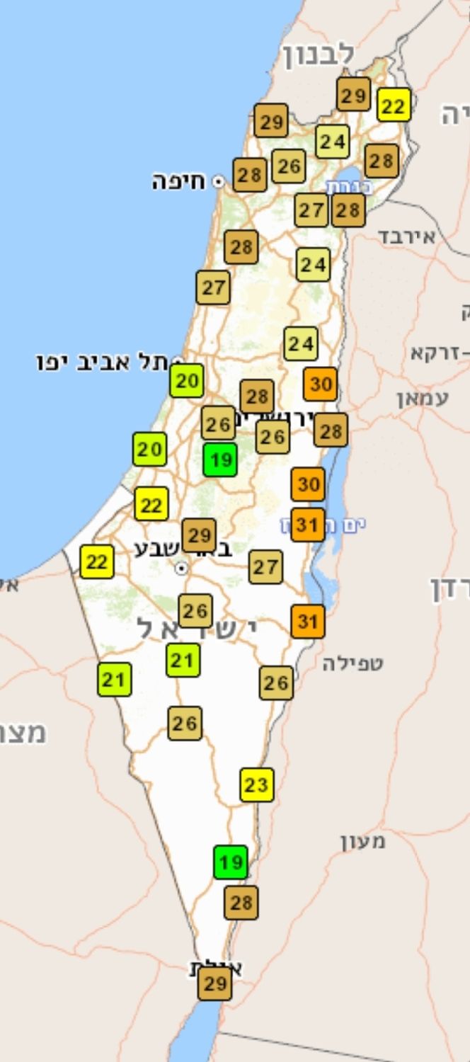 - ירושלים: הטמפ' כעת גבוהה יותר מהממוצע של טמפ' המקס' באוקטובר בבירה אליחי