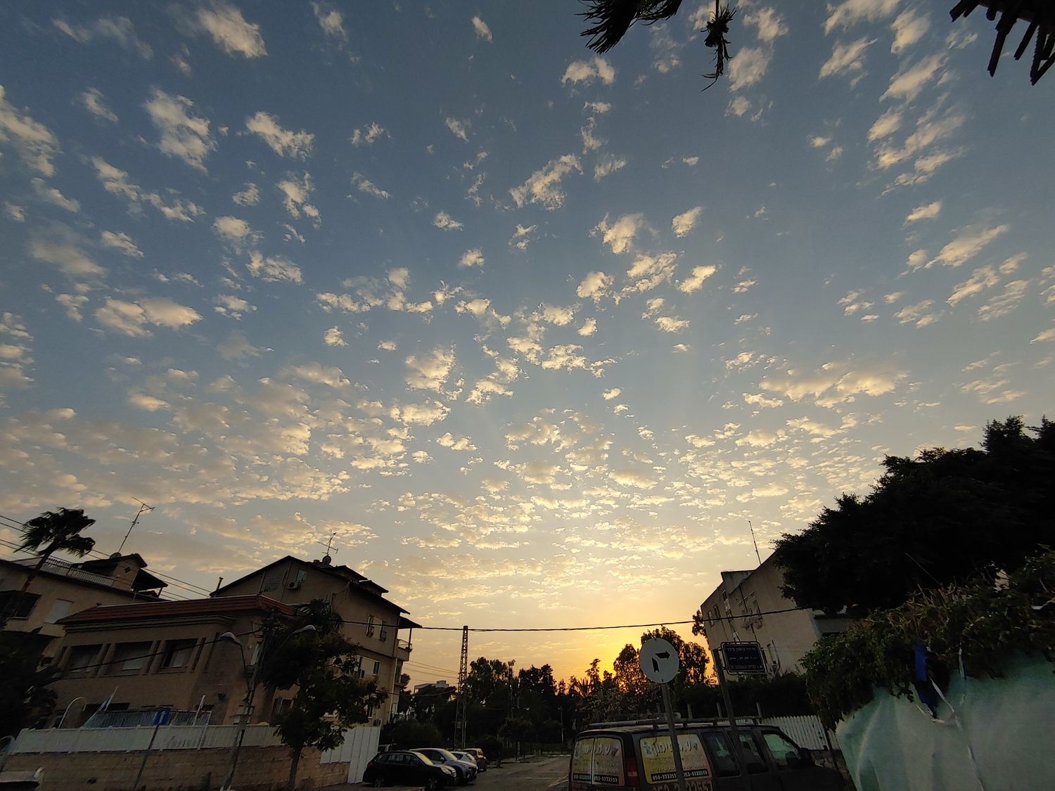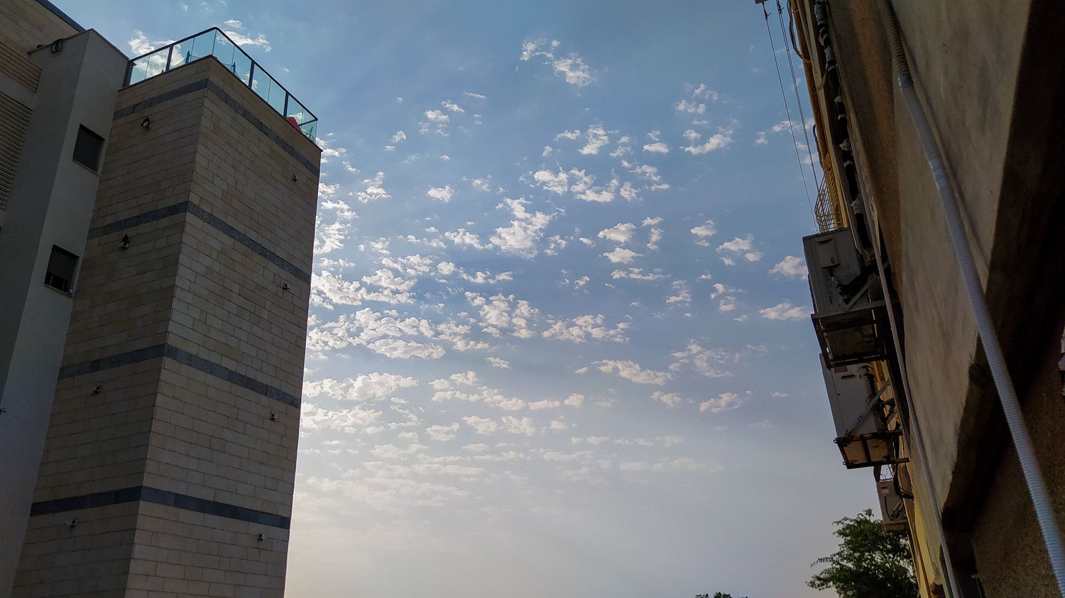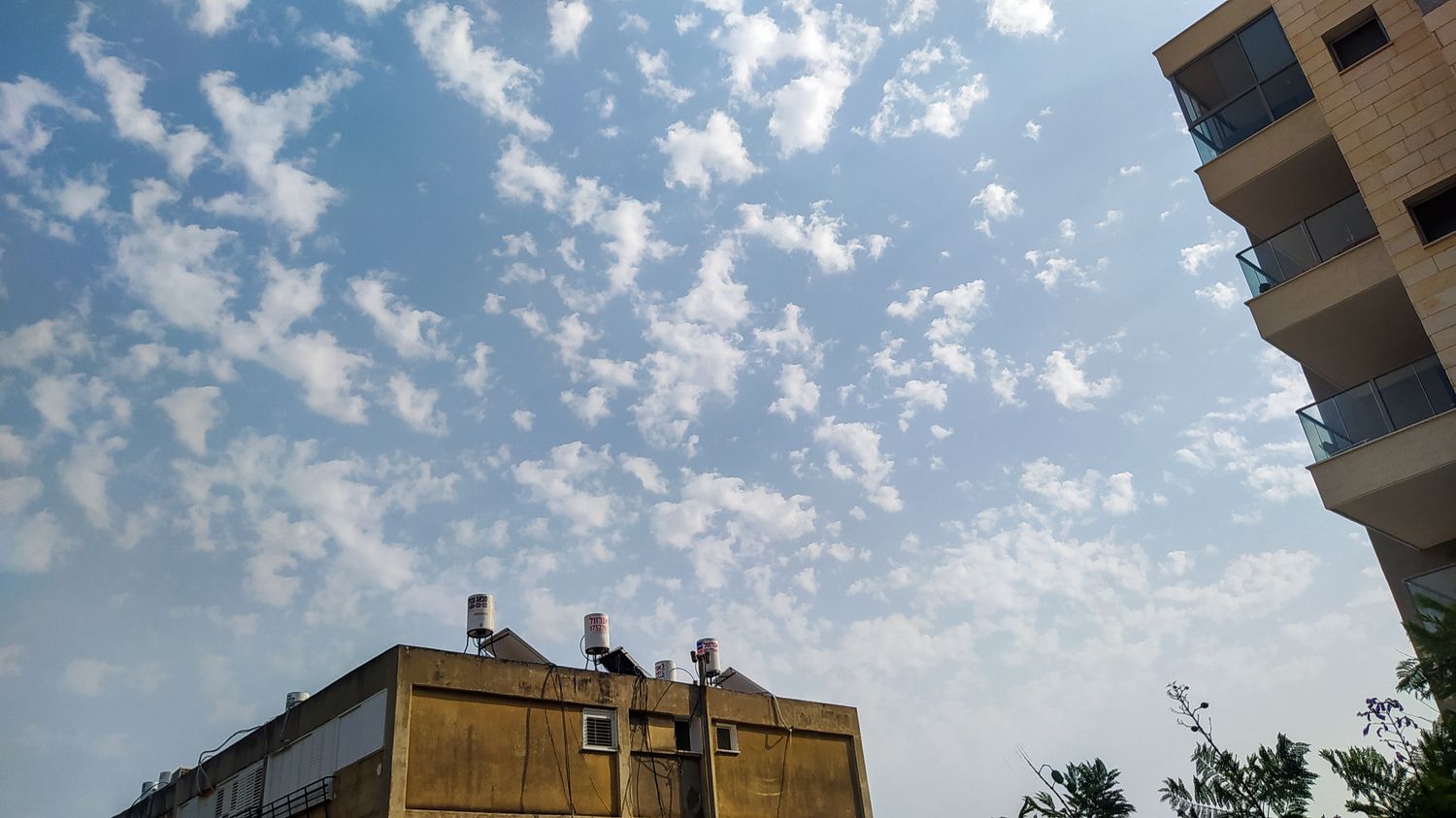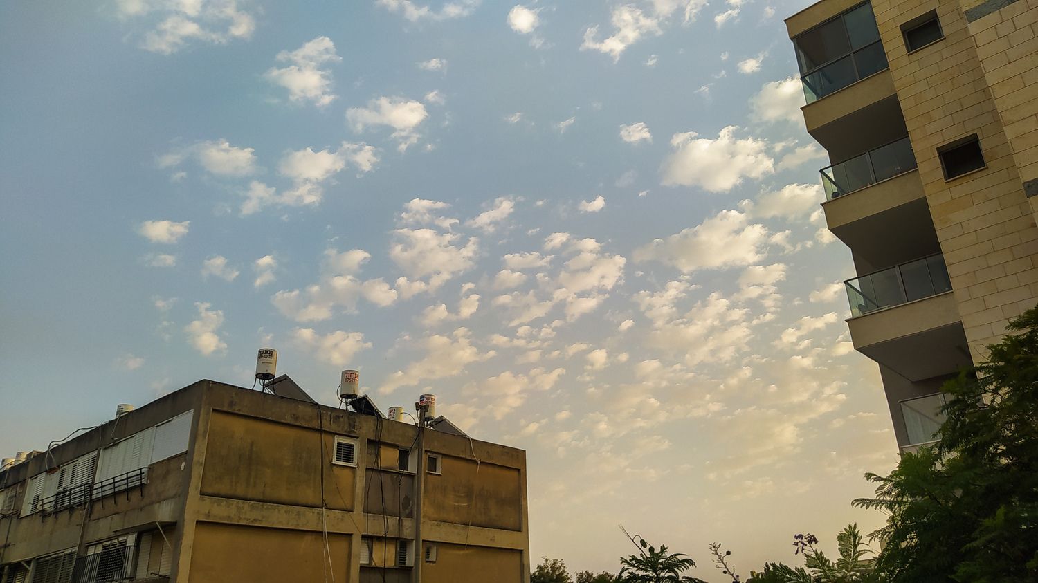 - שילוב יפה של עננות נמוכה ובינונית. משהו שקורה רק בימי שרב; תום