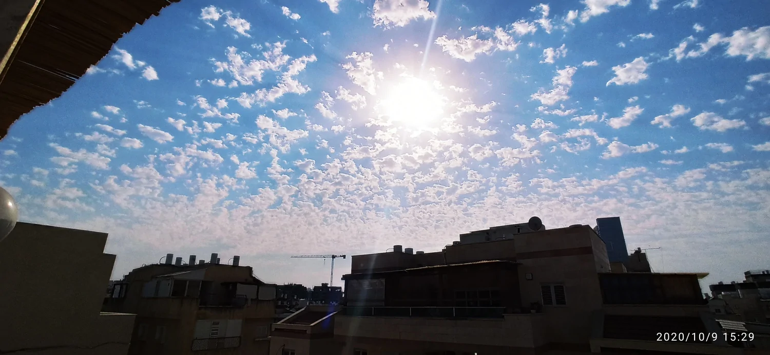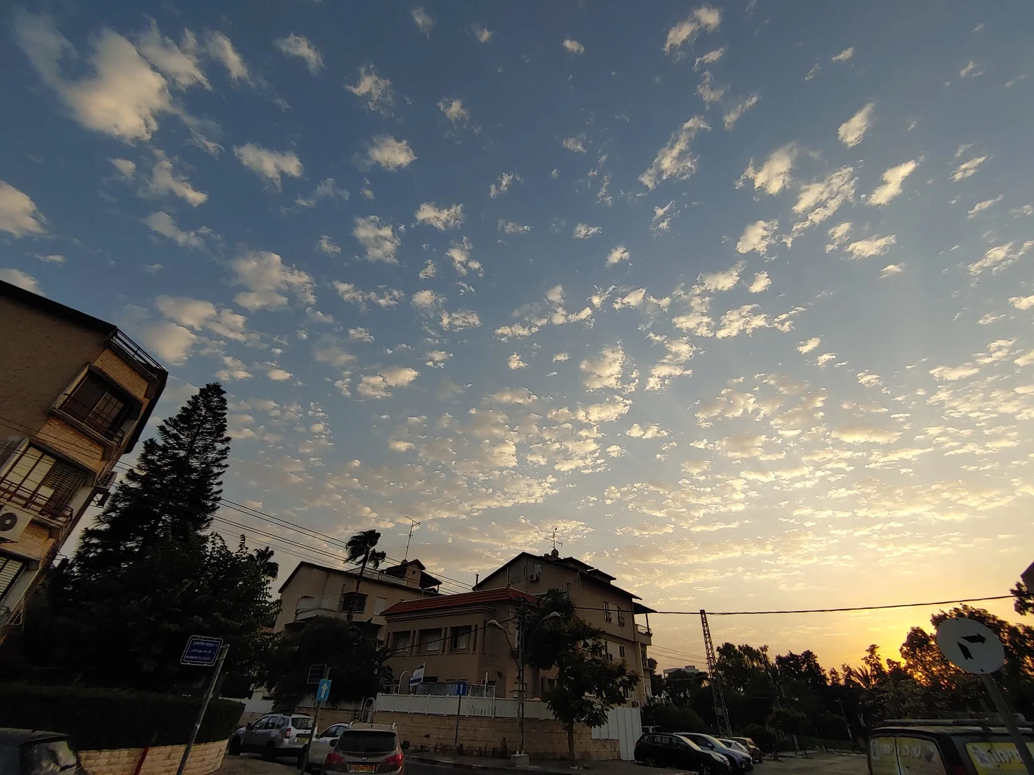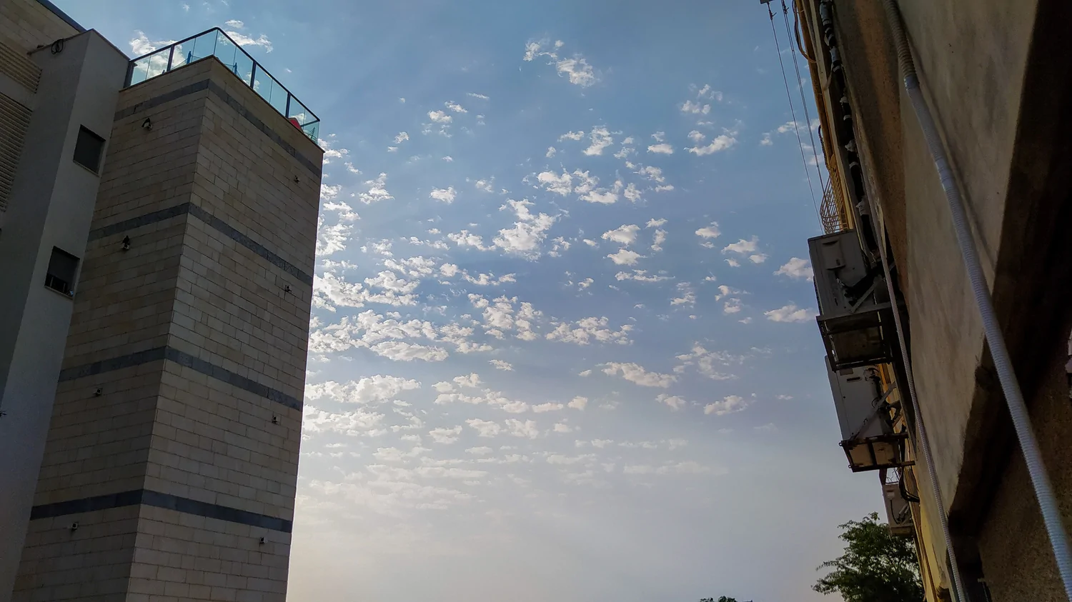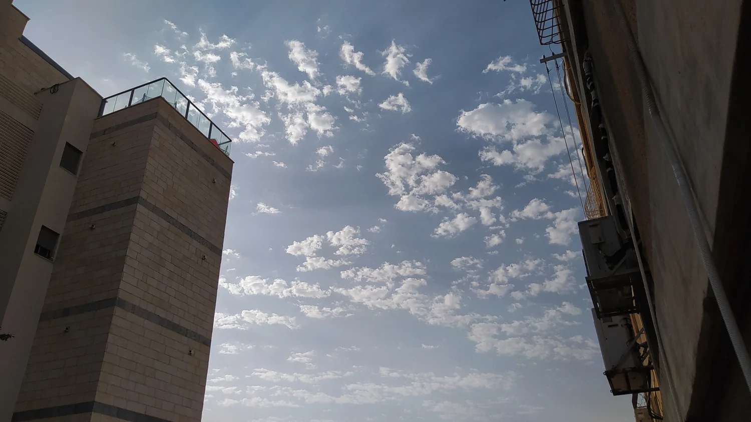 - שילוב יפה של עננות נמוכה ובינונית. משהו שקורה רק בימי שרב; תום