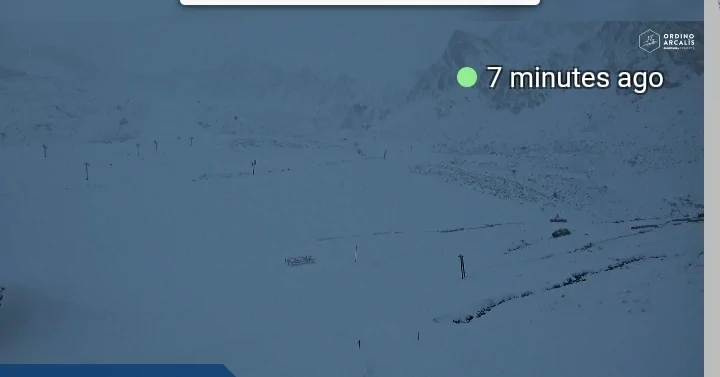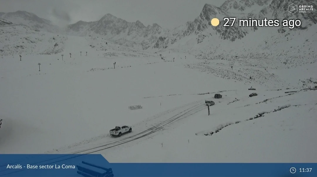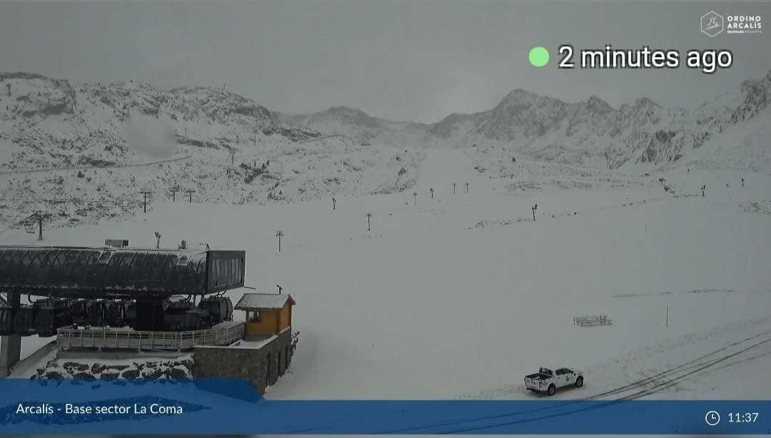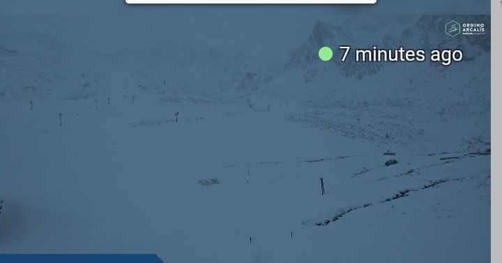 הנה תמונת שלג באנדורה, מלפני כמה דקות (חשוך בגלל שיש עננים והזריחה חלה לפני מספר דקות)
