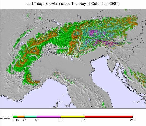 יורד כרגע שלג בהרי איטליה בגובה של מעל לאלפיים מטר (אלפיים ככל הנראה) לא רחוק מהגבול עם השוויץ ואוסטריה