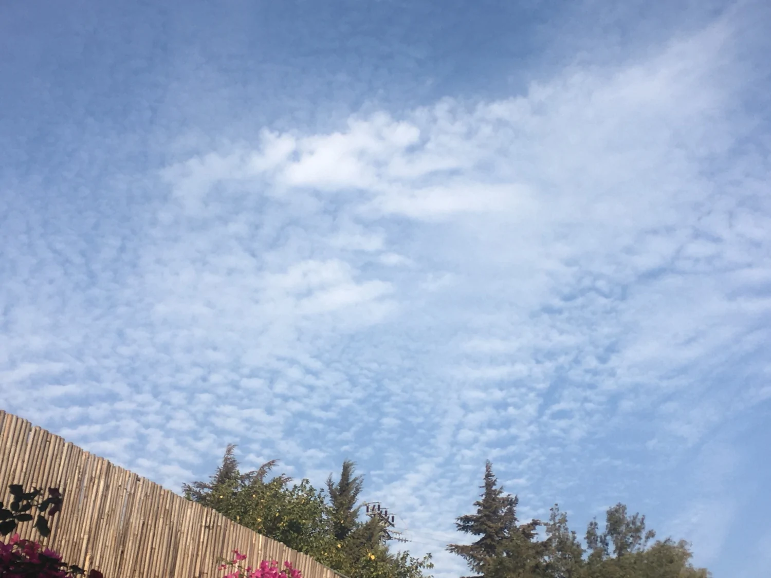 לאט ובטוח אנחנו יורדים. כעת 26.8° עם 67% לחות ושמים עם עננות גבוהה ונמוכה (מה שנראה כקומולוסים קטנים על רקע צירוסים)