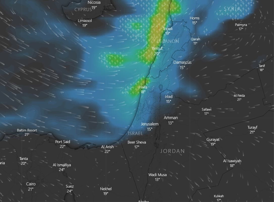 - לפי Windy היום גשם עם סופות רעמים במרכז ובדרום יתחיל משעה 5 בערב אדיר2