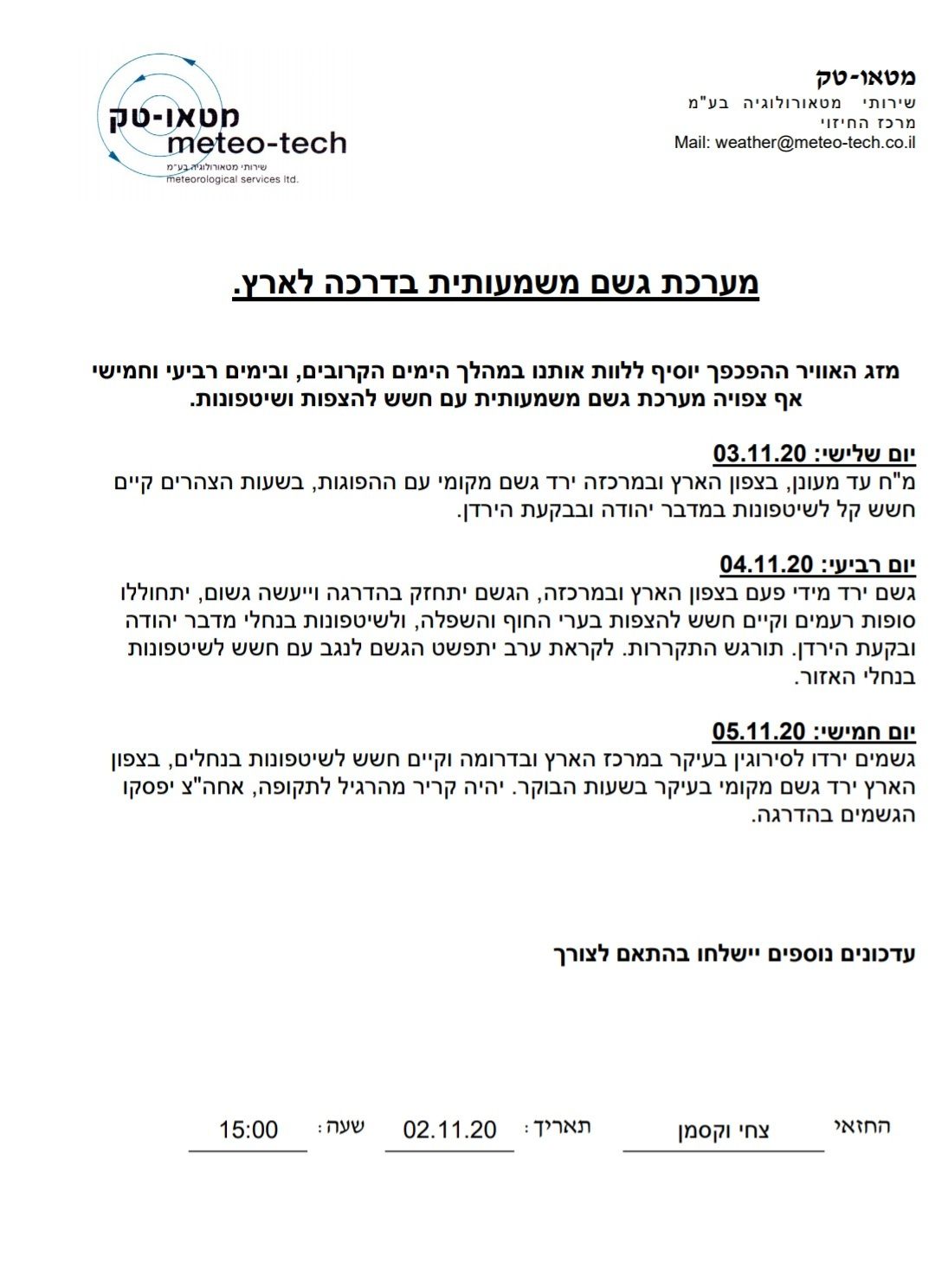 - לפי קוסמו הגשם ידרים עד מצפה רמון עם סיכוי לגשמים נקודתיים דרומה משם חנוך א