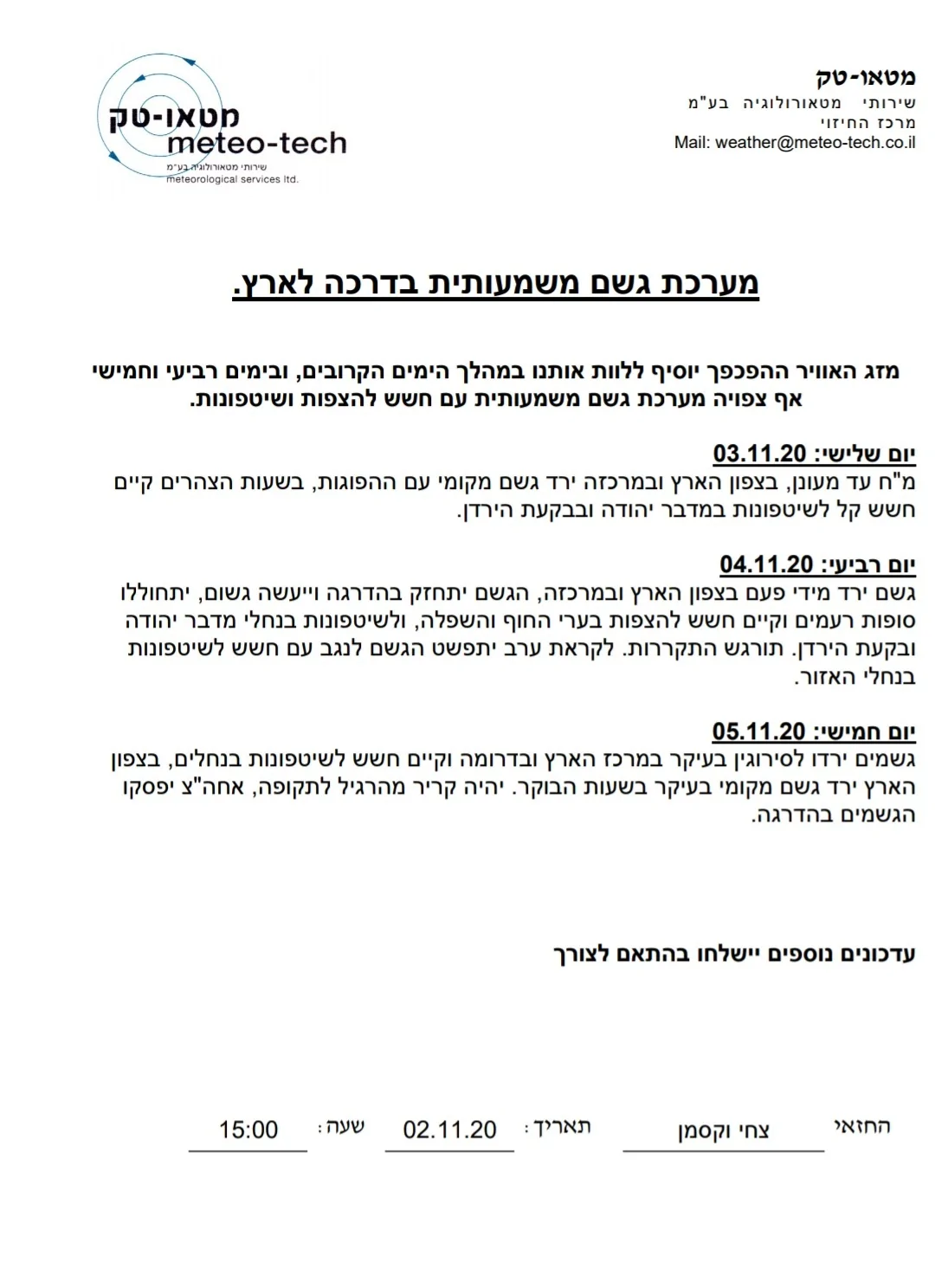 עדכון מזג האוויר לשבוע זה