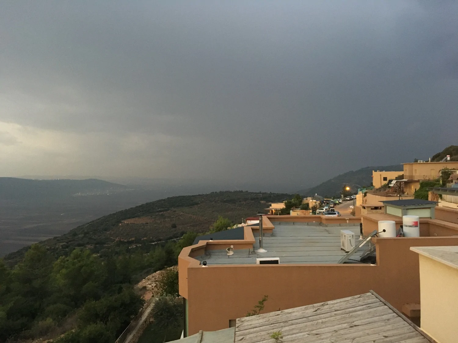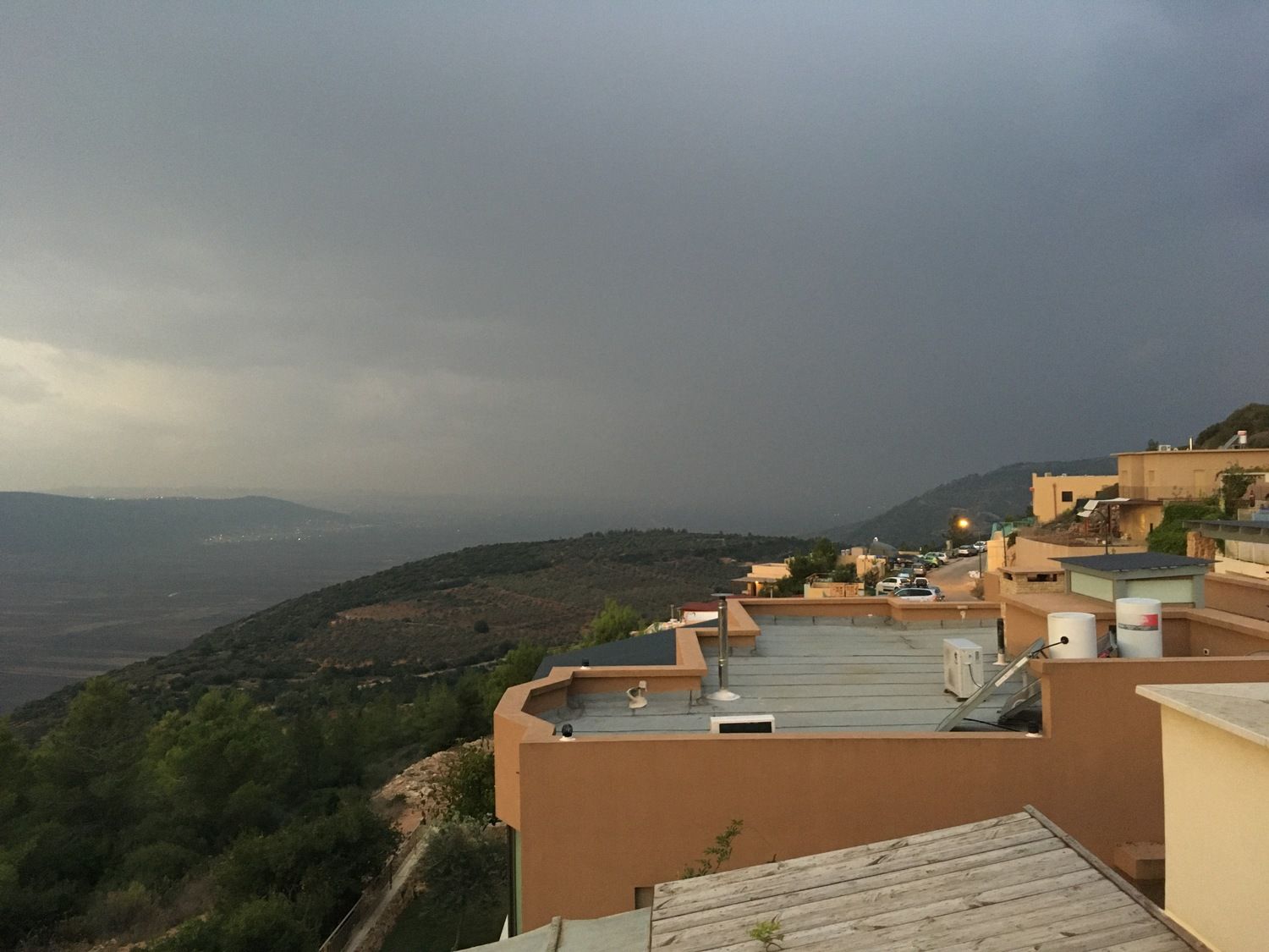 השכמת מסך גשם, רעמים וברקים המגיעים ממערב.
