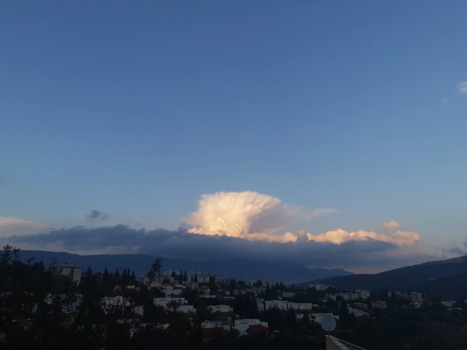 סדן מכיוון צפון מזרח מכרמיאל, צולם לפני דקות בודדות, מעל כרמיאל אין עננים כלל.