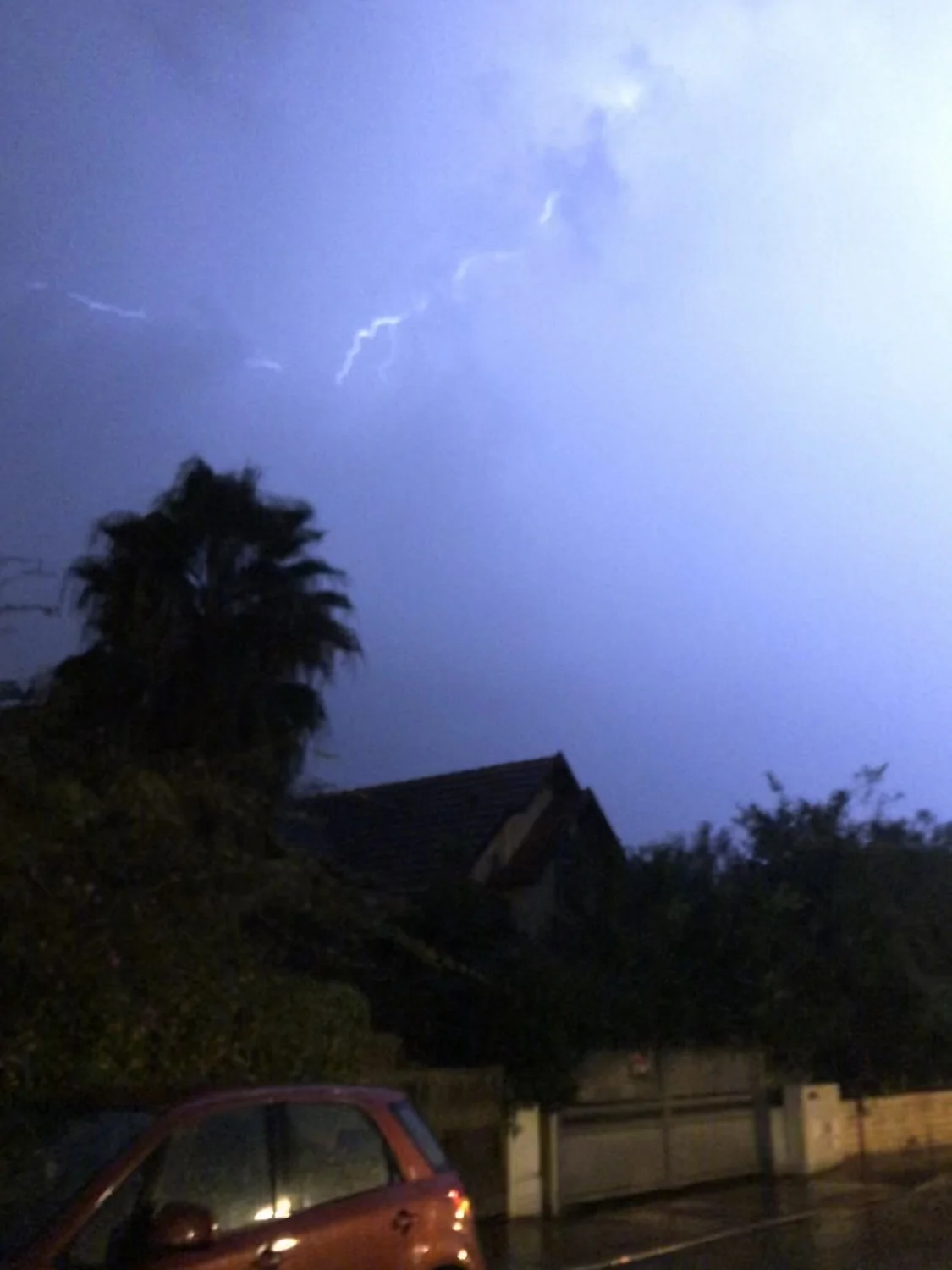- התחיל גשם, טירוף של ברקים ורעמים בכל הכיוונים כאן ירין