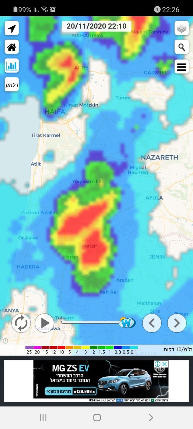 - בזכרון יעקב 65.7 מ"מ למערכת עד עכשיו. כרגע רגיעה אוריאל