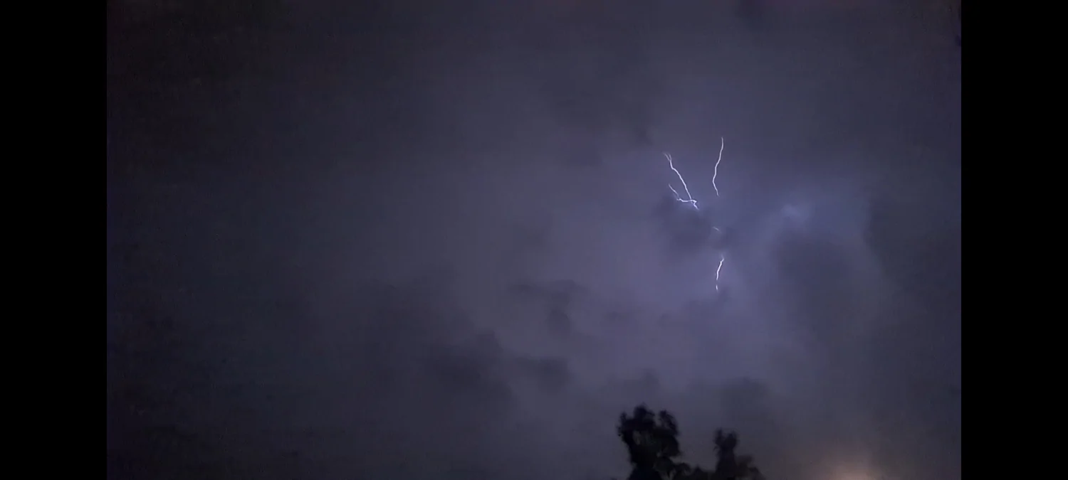 אחריי שבשעתיים האחרונות היו מופעי ברקים ורעמים סביבנו מכול הכיוונים אבל בקושי גשם