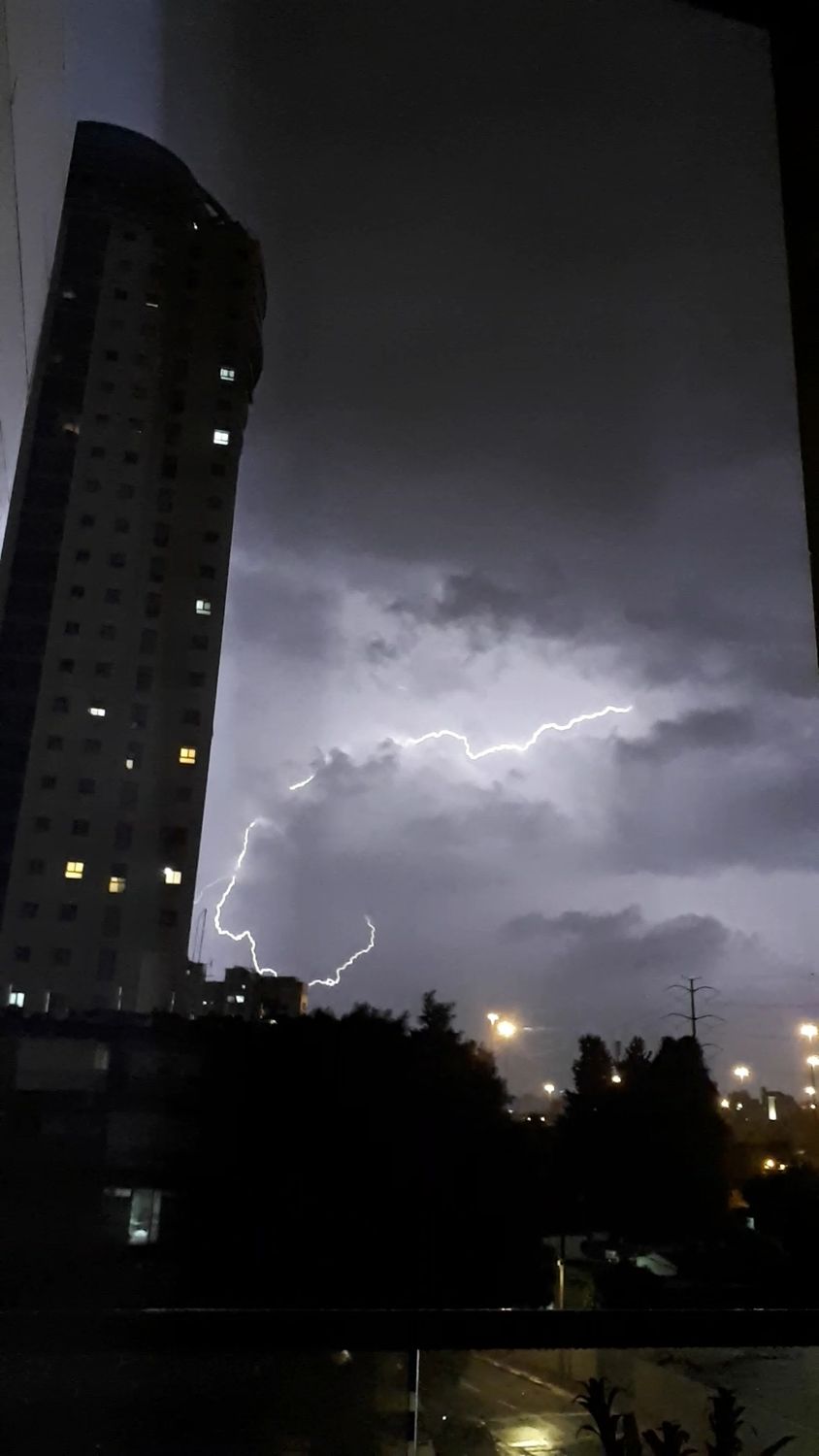 פשוט לא מפסיק הגשם. בלילה סופה נדירה .מצרף תמונה של ברקים מהלילה שהאירו כאן כאילו הגיע הבוקר.