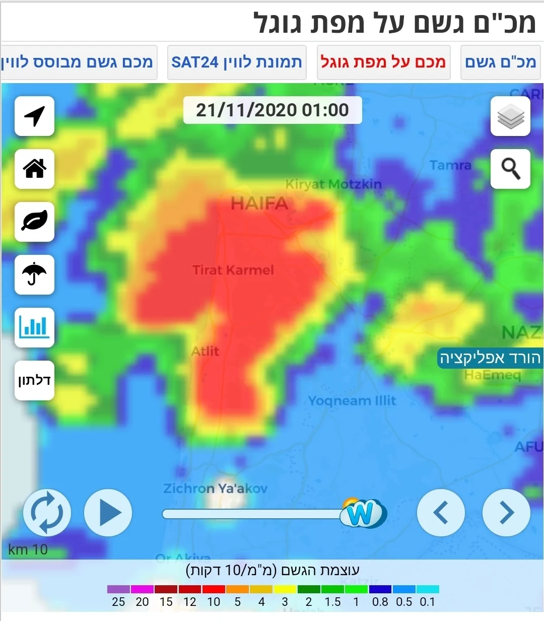 מכ"ם מטורף לאזור חיפה והחוף עד עתלית