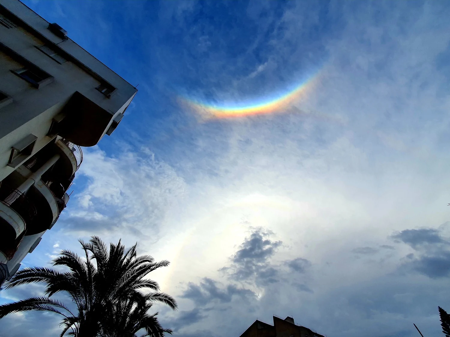 - תמונה נהדרת! קשת הפוכה, נוצרה בגלל פגיעת קרני השמש בשכבת גבישי קרח בעננות גבוהה באטמוספירה Weather2day
