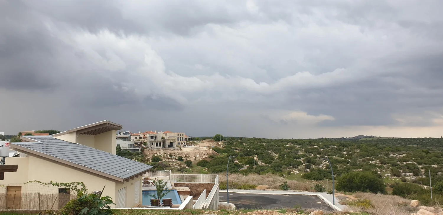 עד לפני כשעתיים עדיין ירדו כאן גשמים לסירוגין, כעת הפוגה שלא נראה שתסתיים בקרוב.