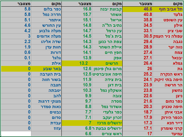 - עידכון טבלת משקעים הרישמית. תל אביב בנתיים השייאנית משה