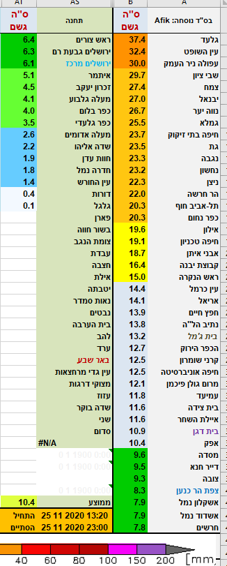 - טבלת משקעים מעודכנת מהשירות המטאורולוגי. קרדיט מלא ל"חובב" משה