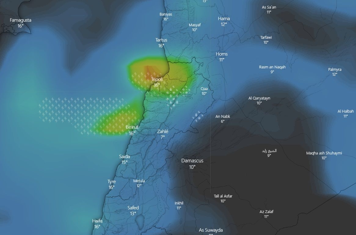 - עדכון אחרון, מדיקן "איליינה" בשלבי דעיכה סופיים ואכן ביצע נחיתה בטריפולי, לבנון Weather2day