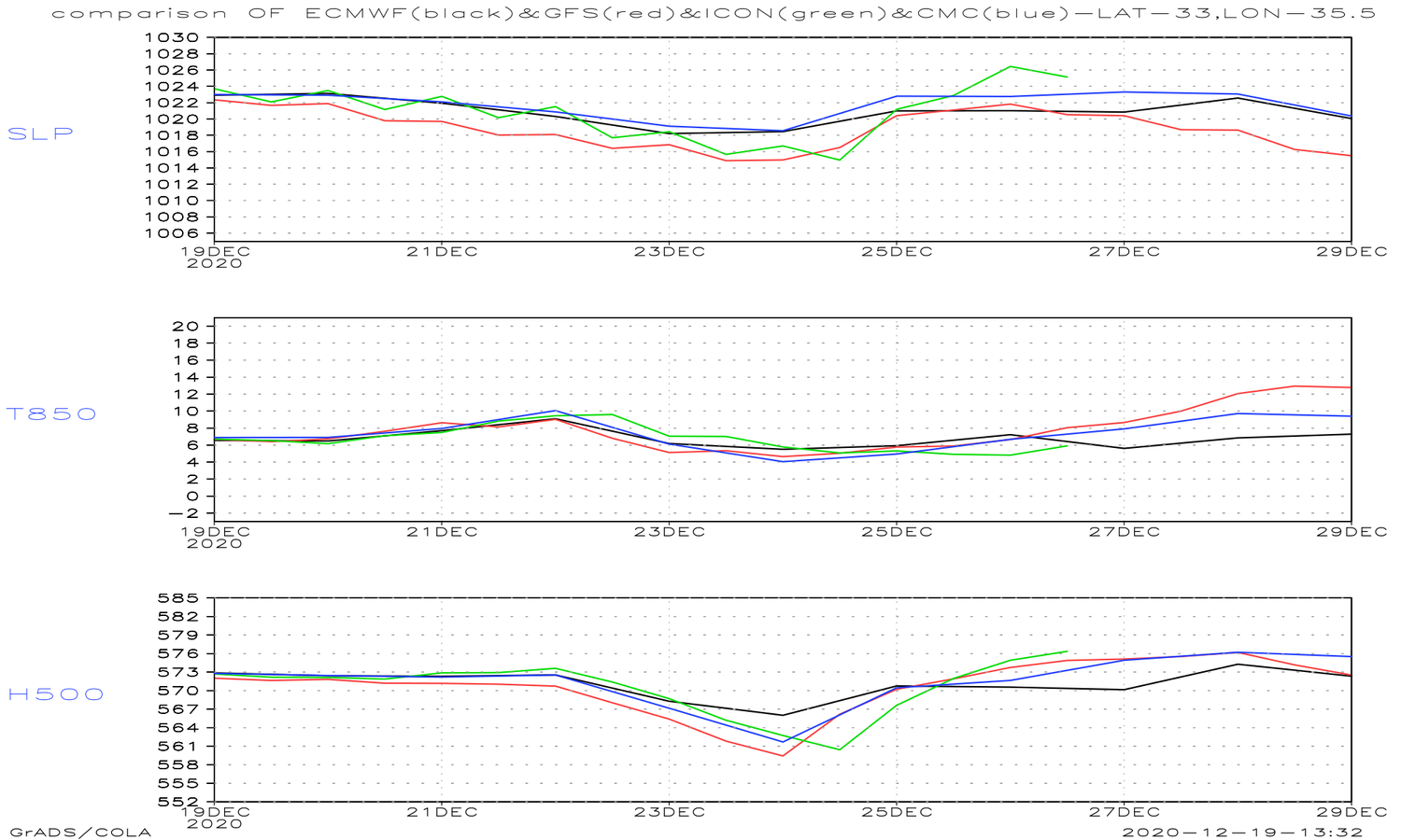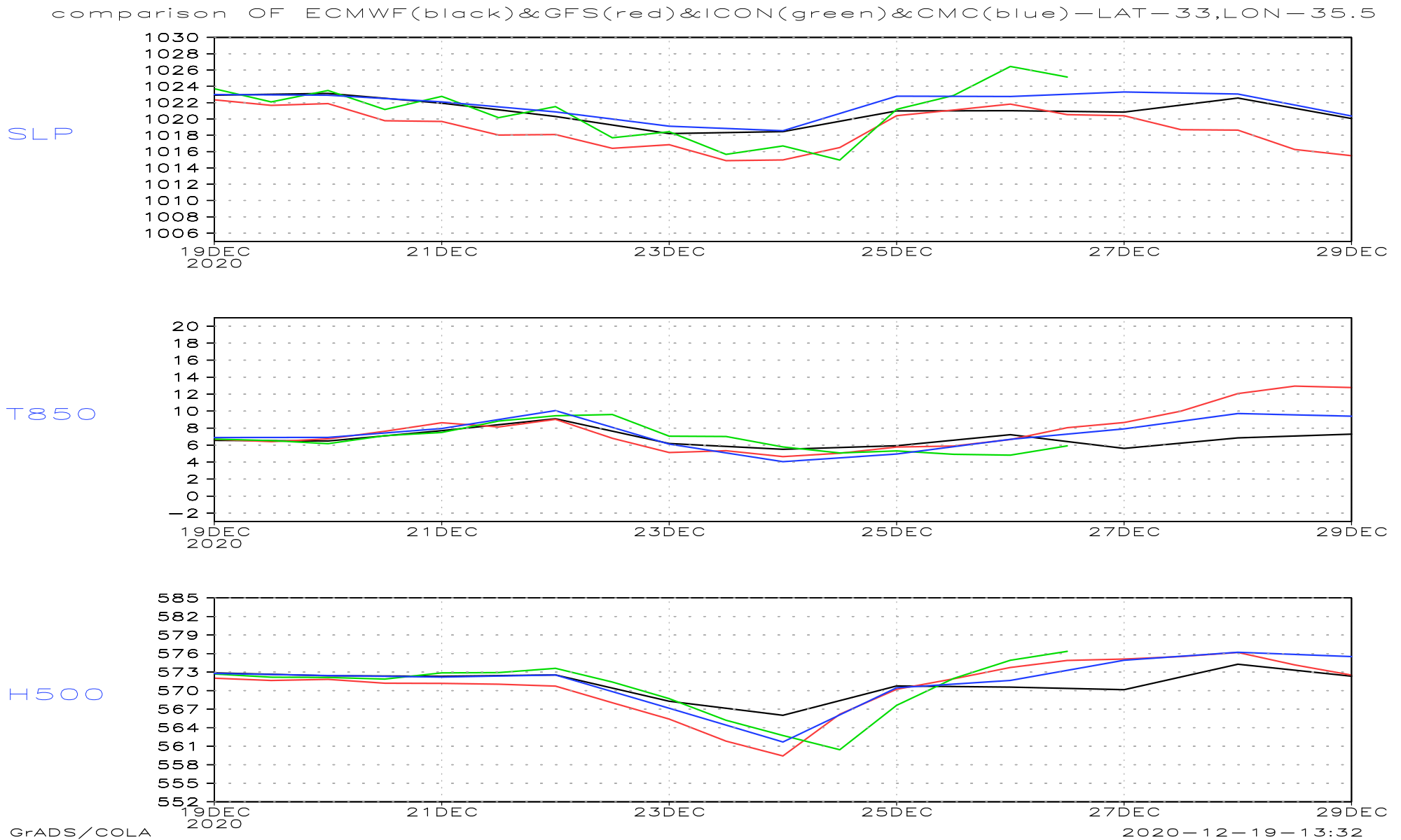 השוואת מודלים להיום - שלושה מודלים צופים את שיא מעבר האפיק הרדוד בלילה שבין רביעי לחמישי , כאשר מודל ICON מראה את שיא מעבר האפיק ביום חמישי בצהריים........ , לאחר מעבר האפיק המודלים די מסכימים על התרכסות מחודשת ומזג האוויר יציב ללא גשם.