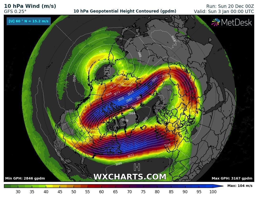 - עדכון: התחממות סטרטוספירית פתאומית, GFS צופה SSW בתחילת ינואר Weather2day