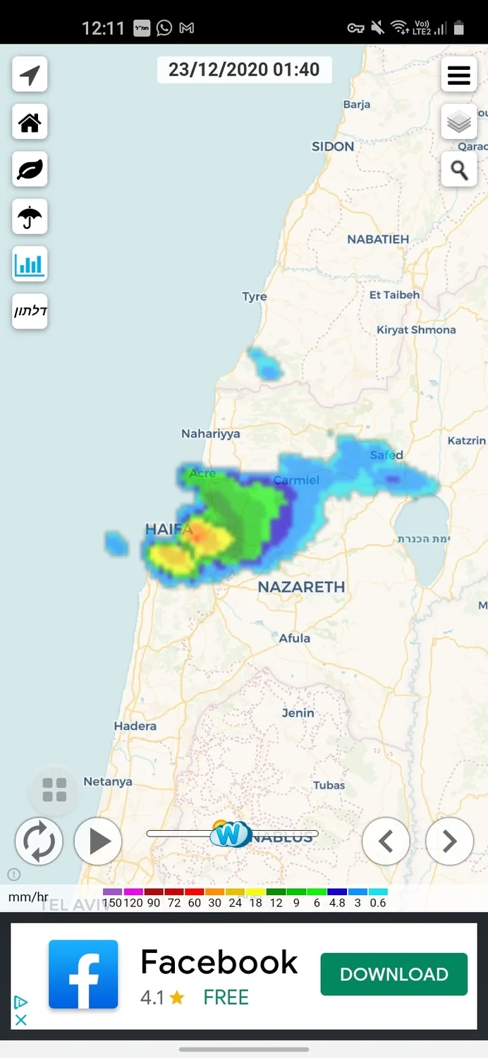 - נתניה מרכז גשם קל וכעת מטפטף הערכה 3 ממ במהלך הלילה. שי נתניה