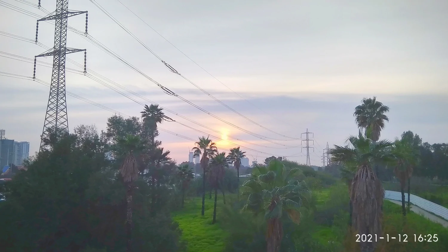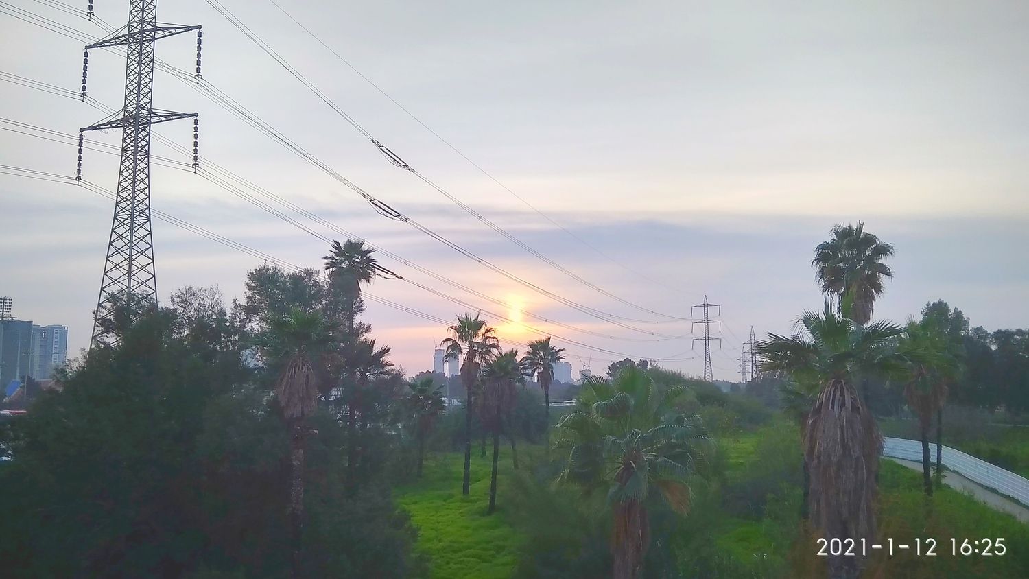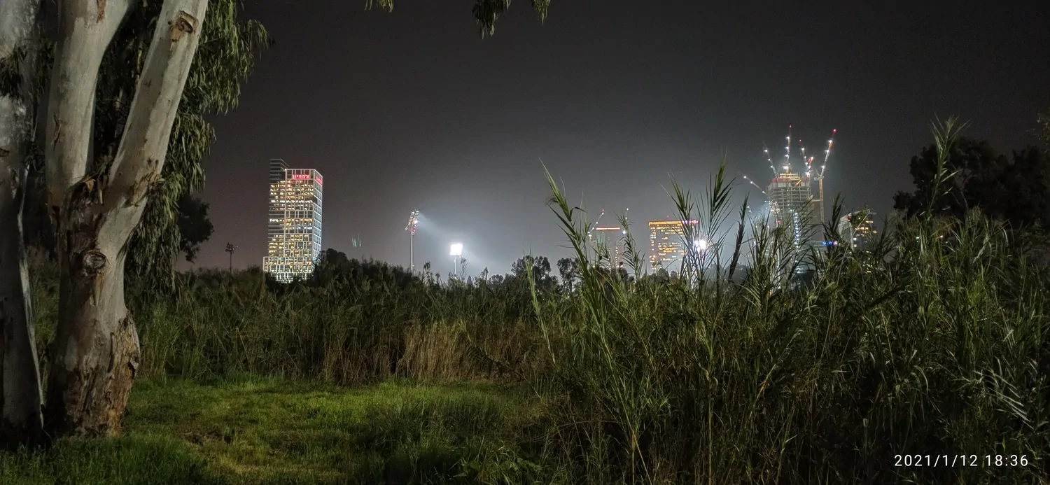 הצמחיה הסמוכה לירקון מתחילה להיות רטובה כבר כשעה קודם השקיעה