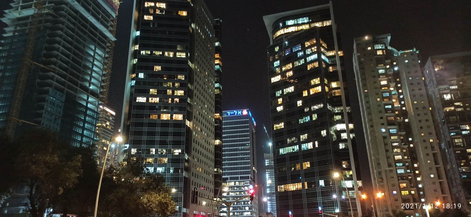 מרכז העסקים של ב''ב- גבול ב''ב ר''ג כפי שהוא נראה בלילה