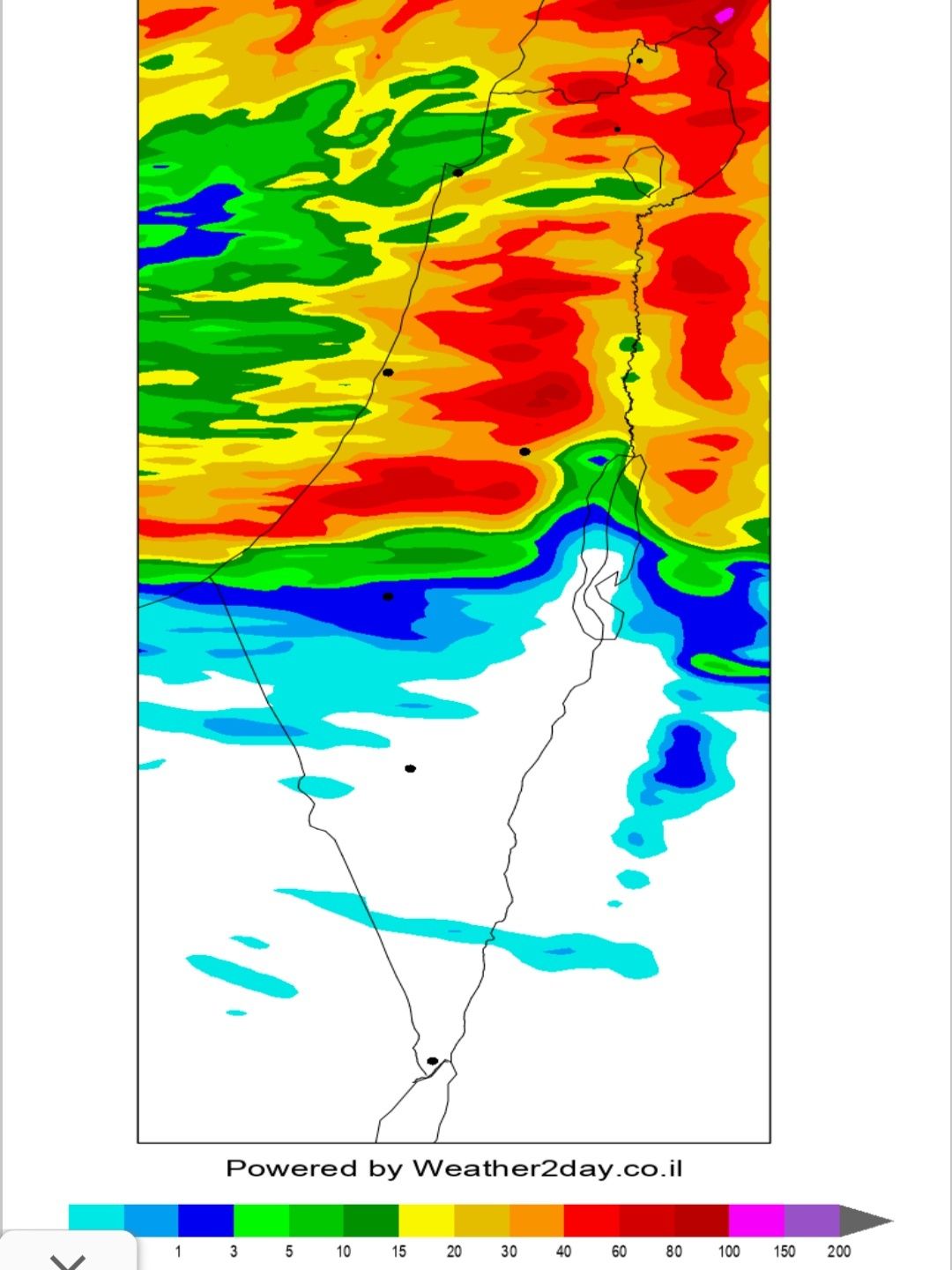 מעל 100 מ״מ בחלק מהאזור!