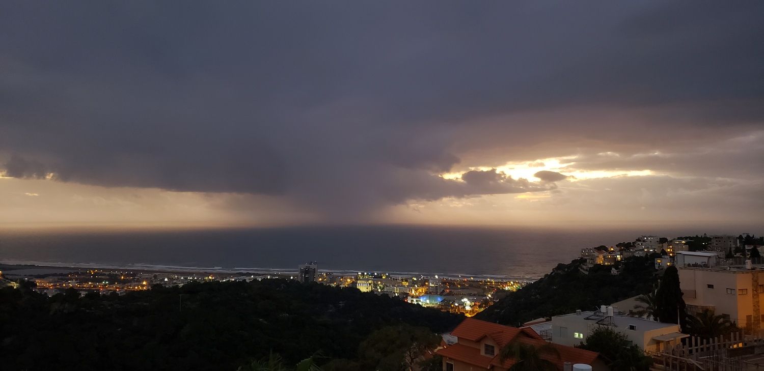 - ענן גשם משייט מול חיפה, די מדרום לצפון כך שכנראה לא יכנס טל מטר