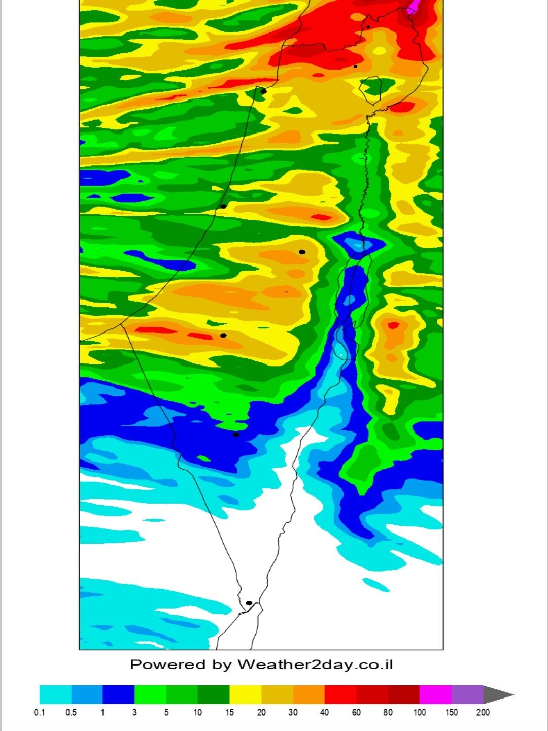 אבל יש סיכוי סביר שבע תקבל מנה סבירה. בצפון שוב כמות יפה. נראה כמה ואיפה זה יגיע כשלג.
