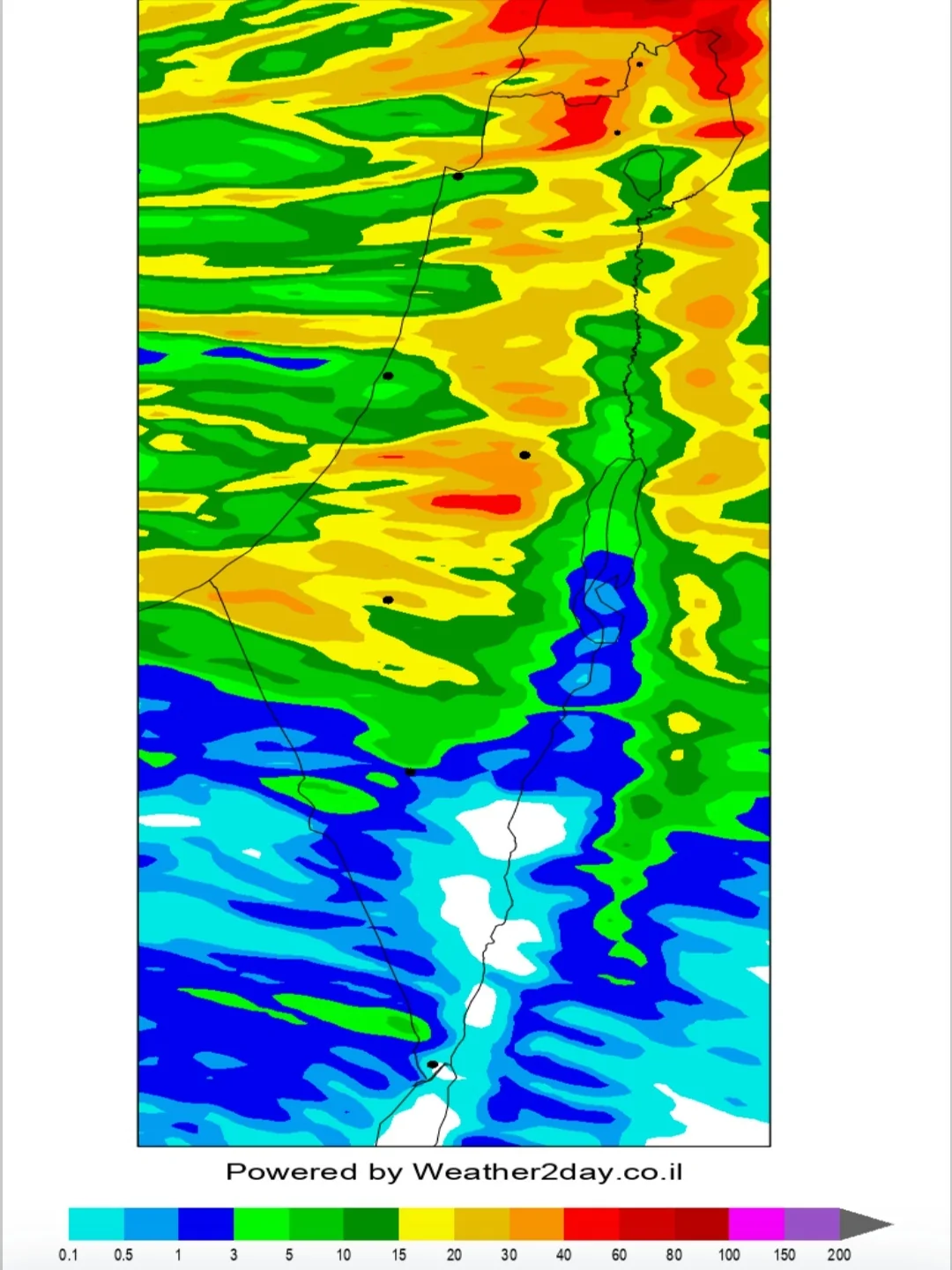 קוסמו גשם - צפי לגשם עד הרי אילת