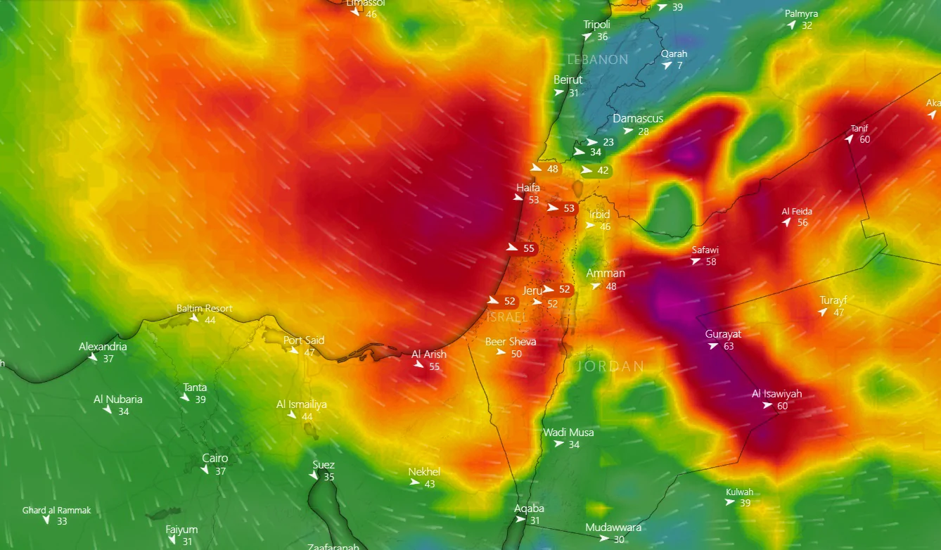 צפי משבי הרוח בליל חמישי-שישי.