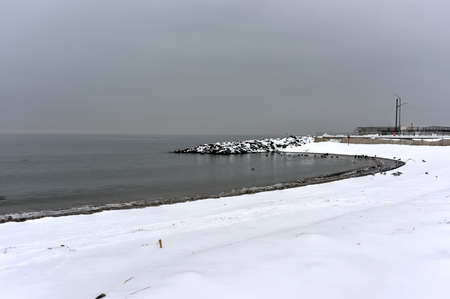 שלג על החוף בחוף מנהטן, ברוקלין, ניו יורק.