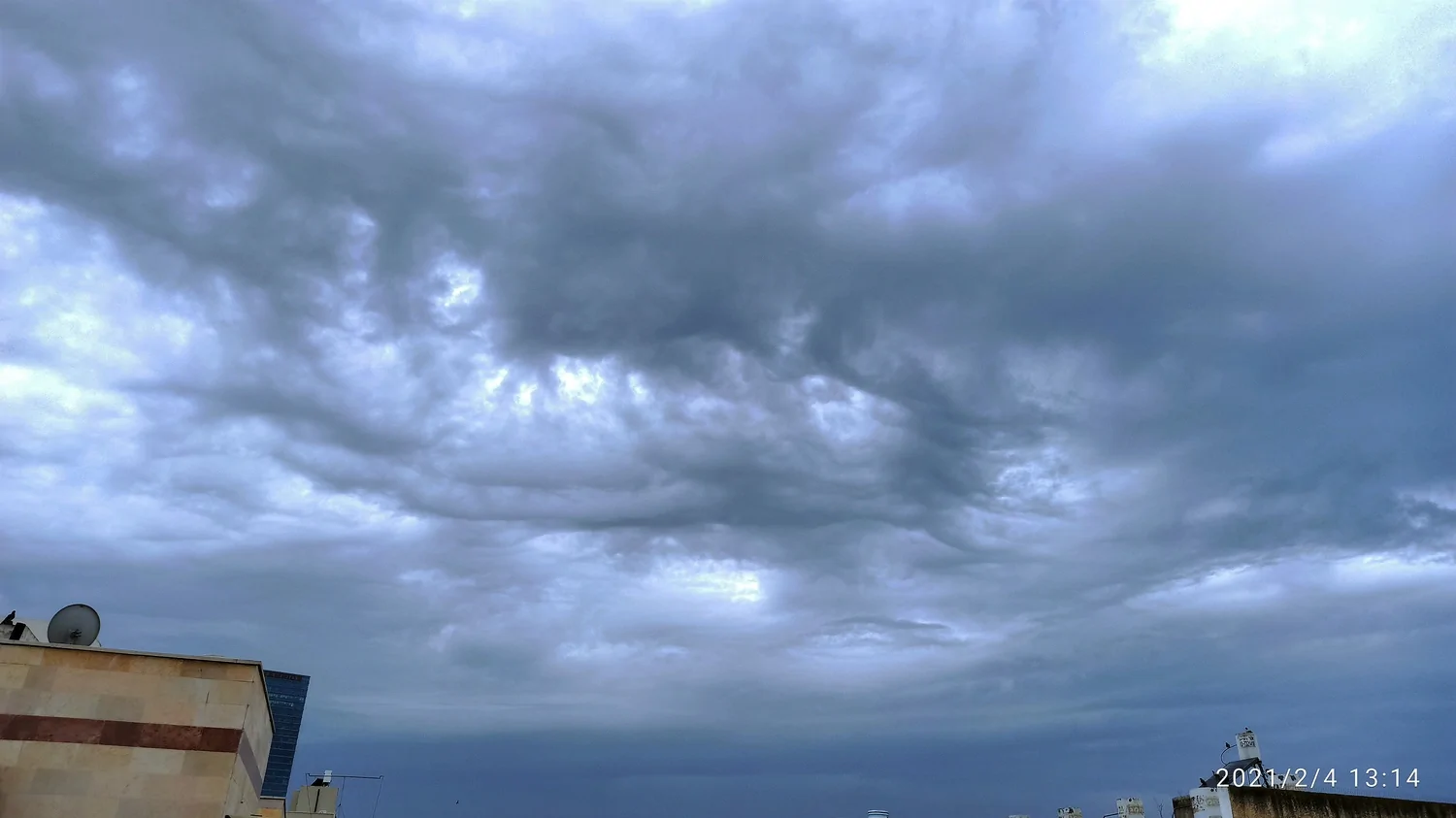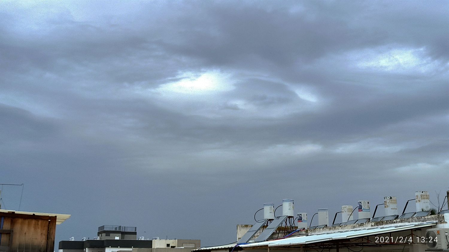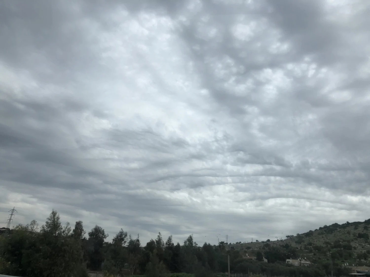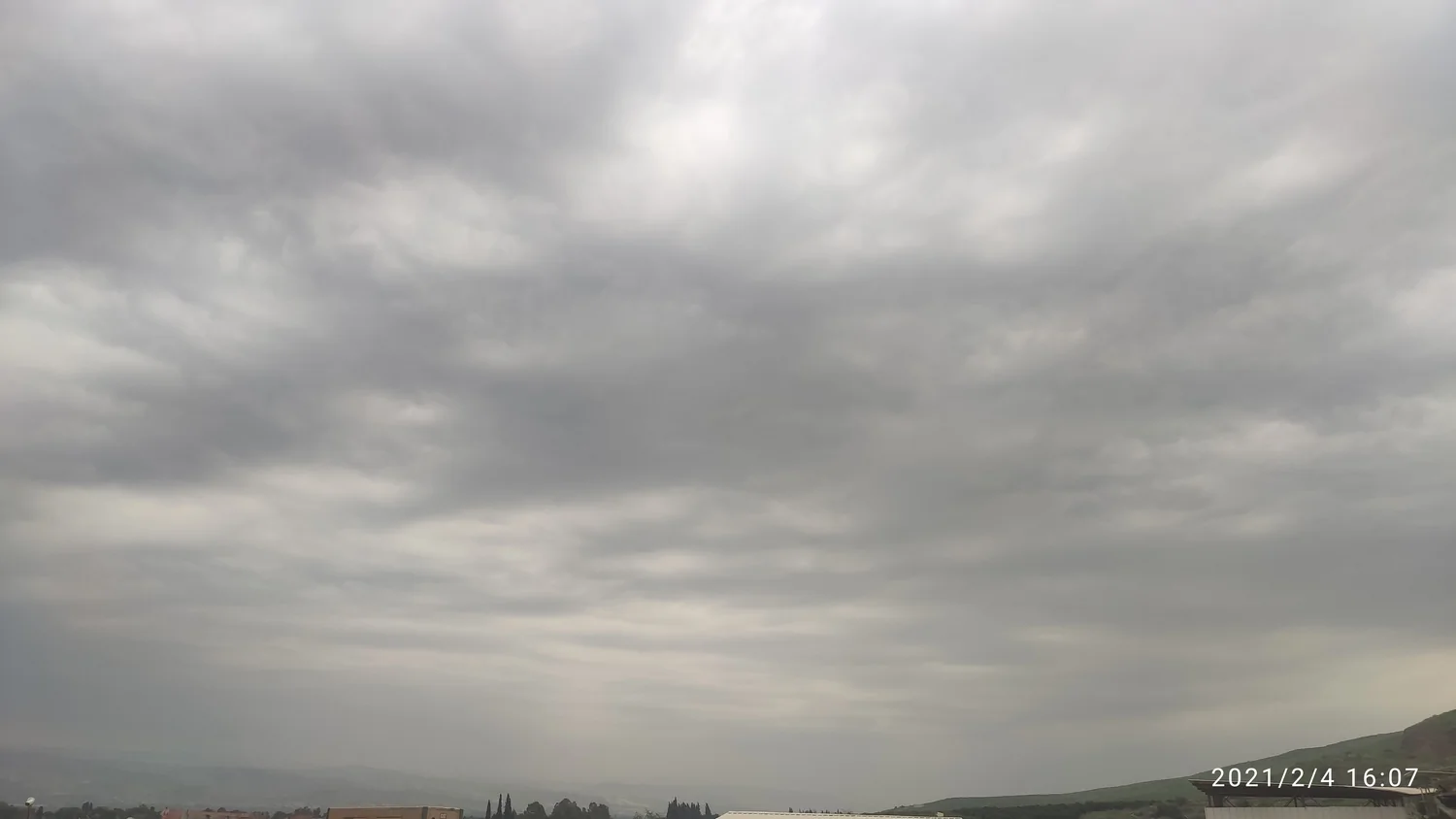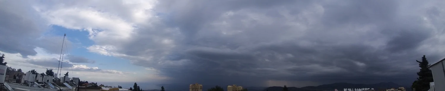 השמים משחירים מרגע לרגע במסך עננות שמכסה את השמים באופן מוחלט.