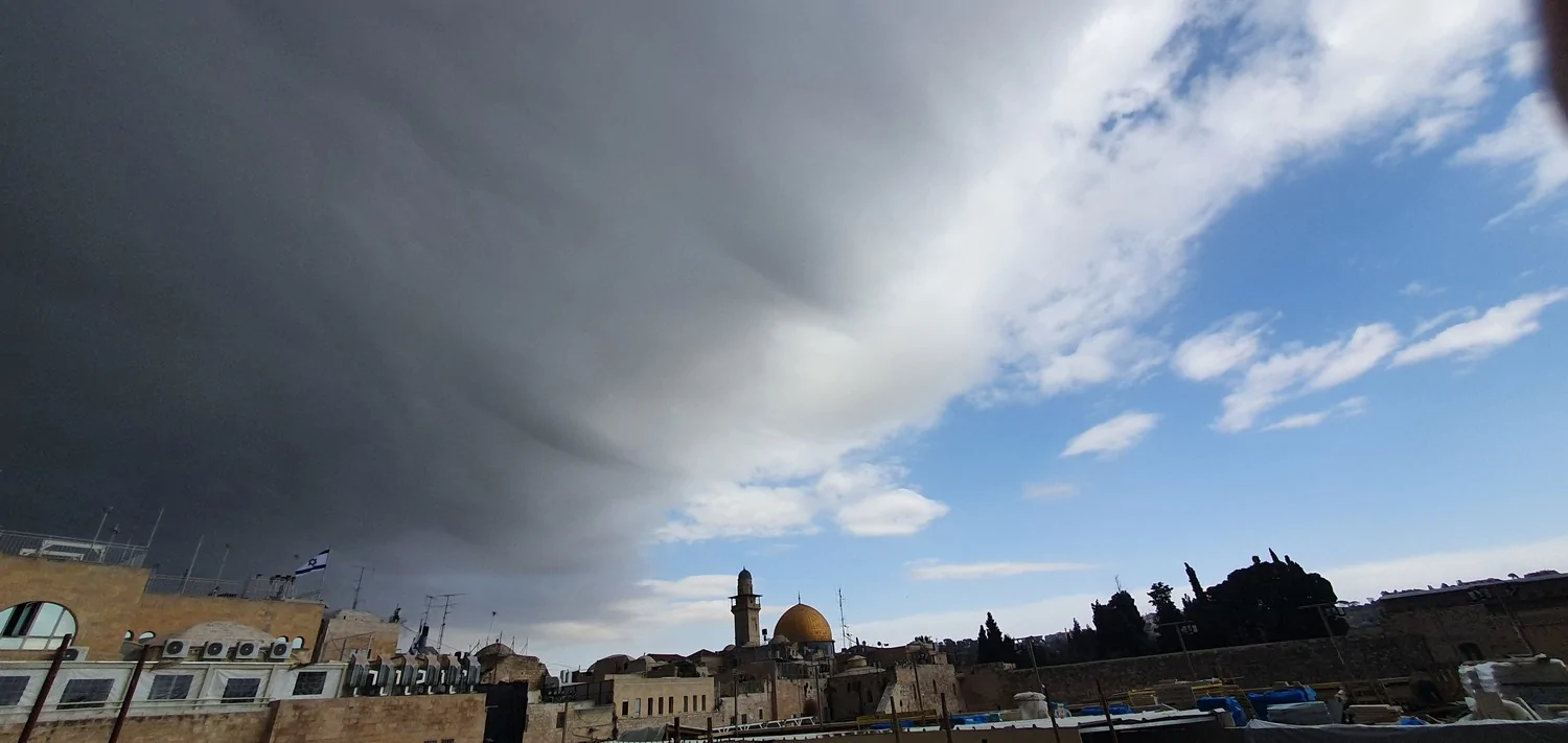 - ענן ענק שנכנס לירושלים-תמונה של ההבדלים בשמיים תמר