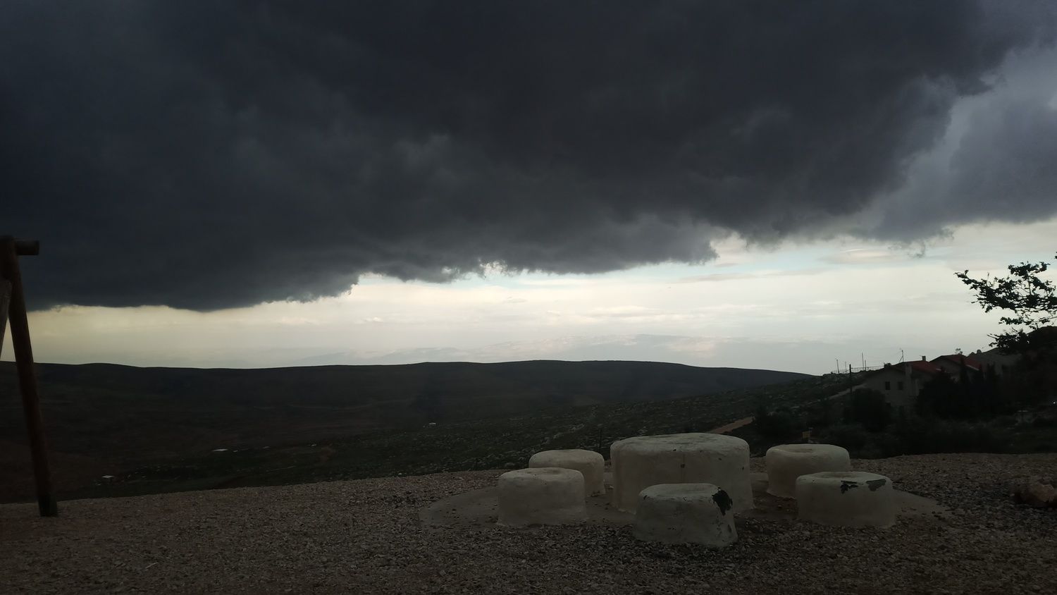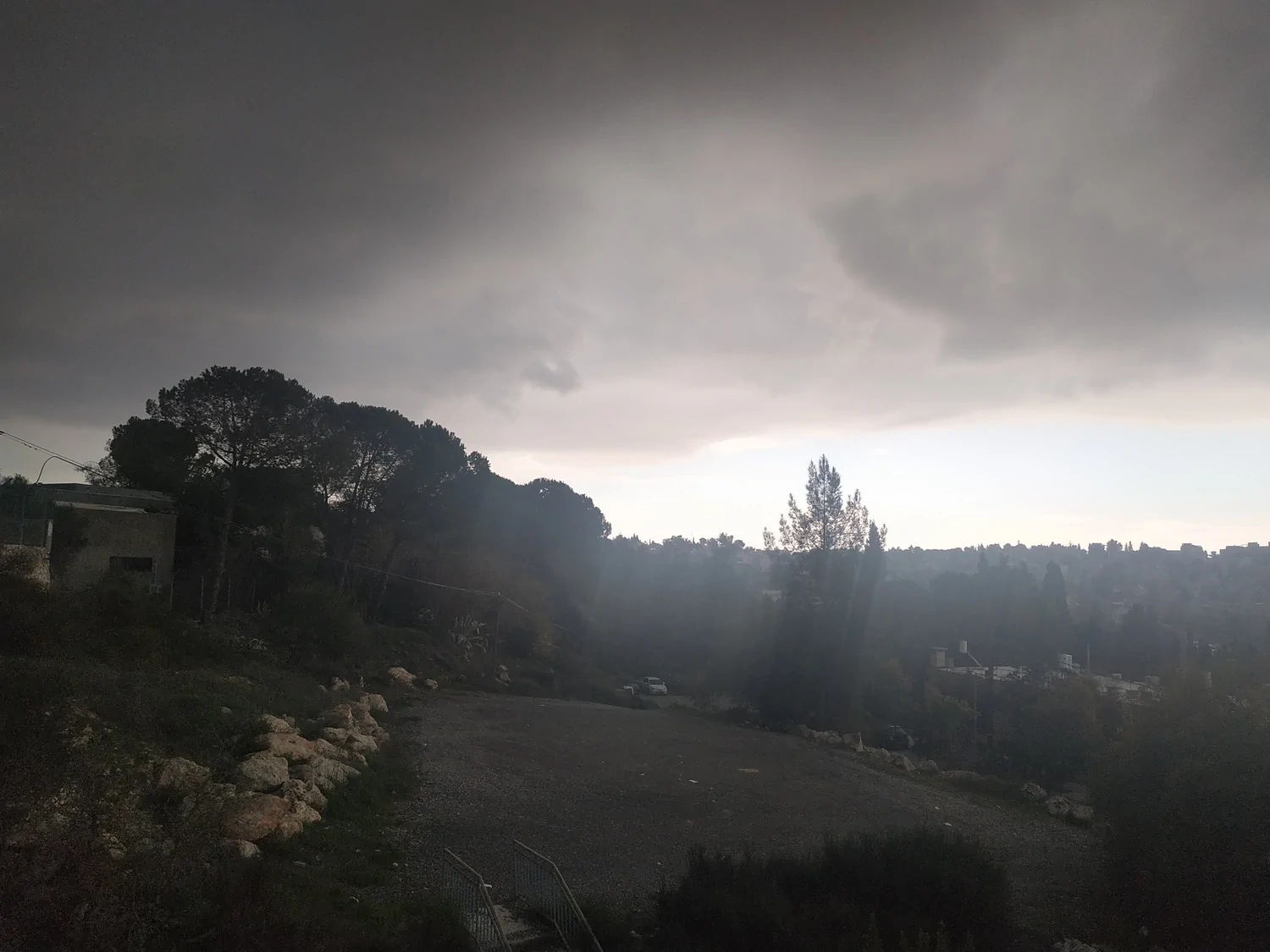 לצערי אני עם מצלמה גרועה מהטלפון. היה מדהים לראות את ההבדל בין השמיים הבהירים שהיו לנו עד השעה 14:00 בערך והענן הענק הזה שהגיח לפתע פתאום ופתח את ארובות השמיים