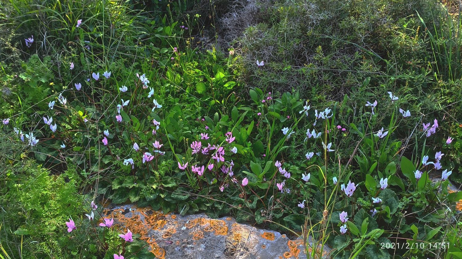את הסיור התחלתי באיזור שבין צור יגאל לצור נתן. במקום יש פריחה רחבה של רקפות וכלניות ועוד הרבה מאוד מיני פרחים.