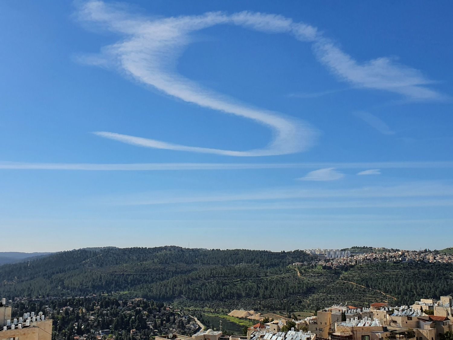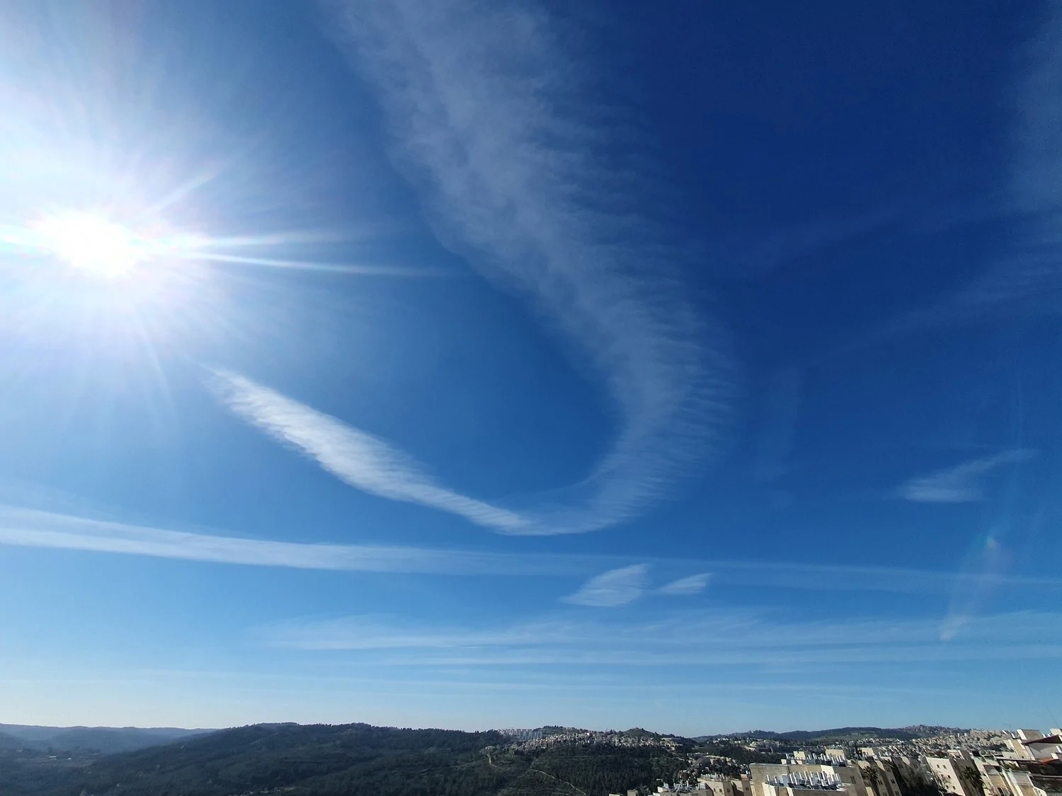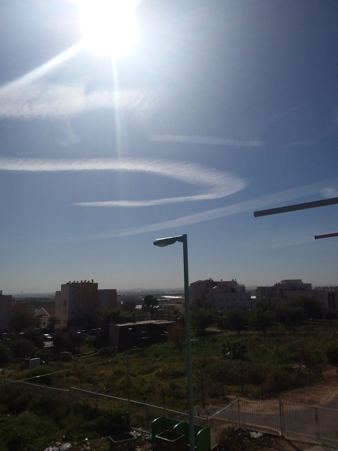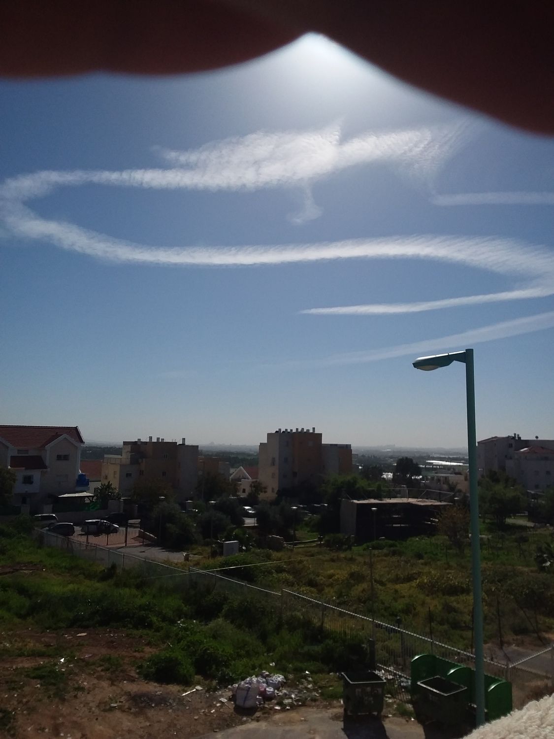כרגע הענן מתפשט ומתרחב ונראה ברור שזה ענן גבוה ולא סתם שובל עשן של מטוס סילון. גם בסמוך אליו יש עננות לא רגילה.