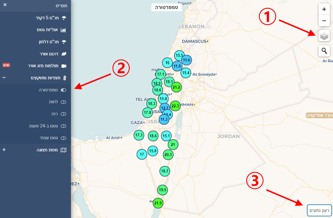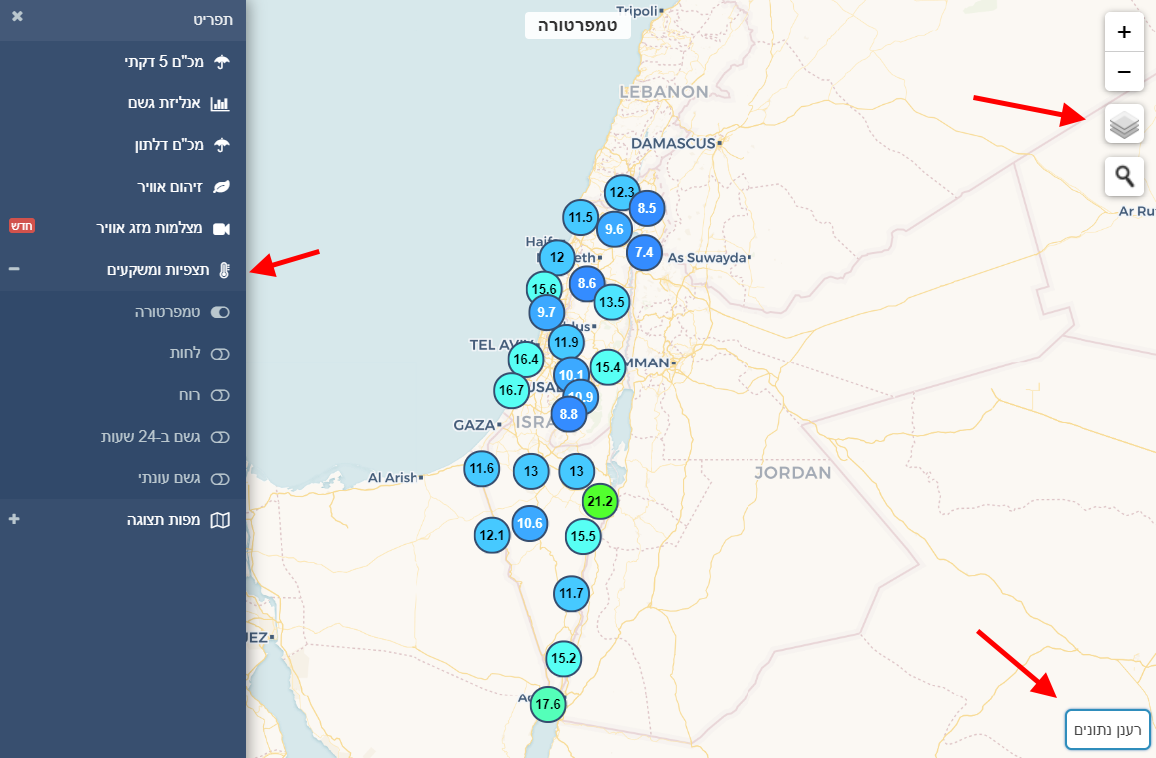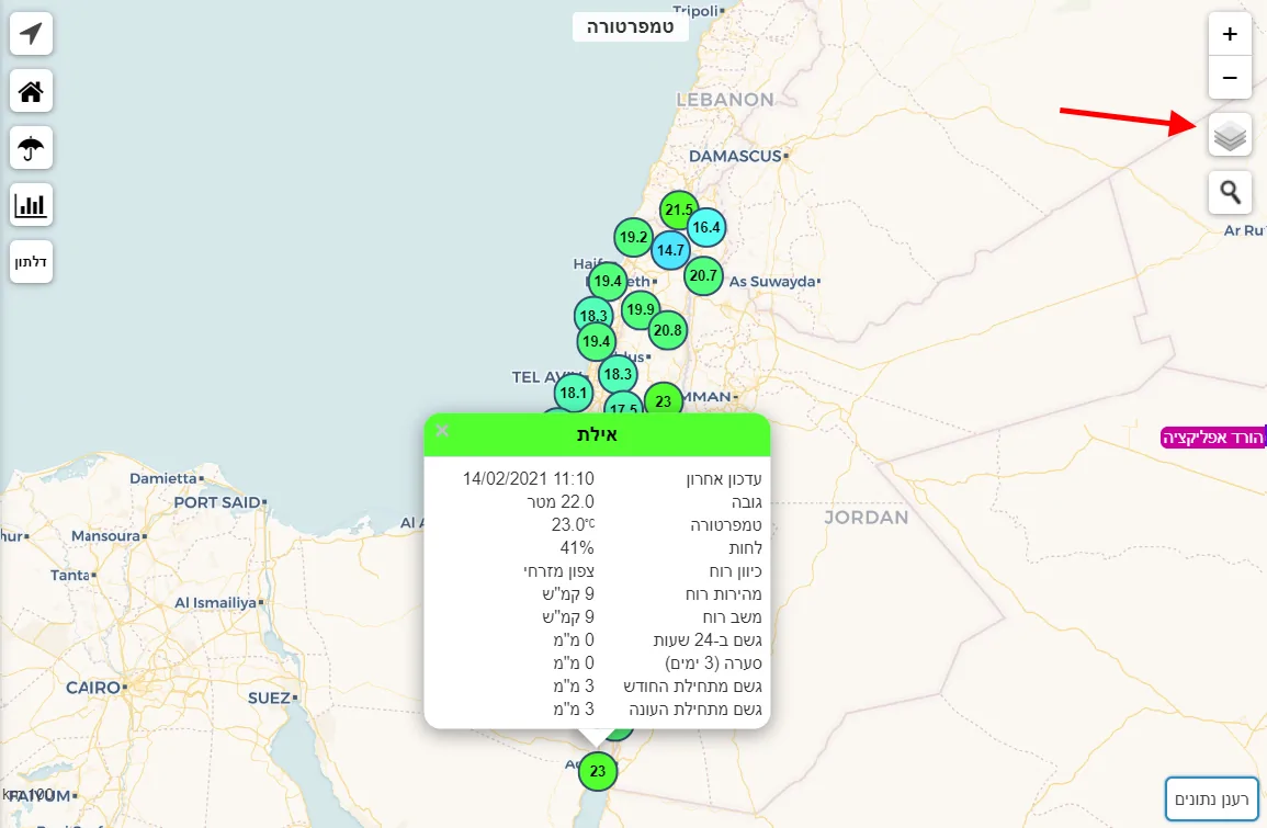 - לא, לחיצה על התפריט באפליקציה > מכ"ם גשם > אייקון שכבות צד ימין למעלה Weather2day