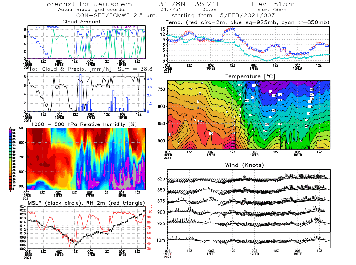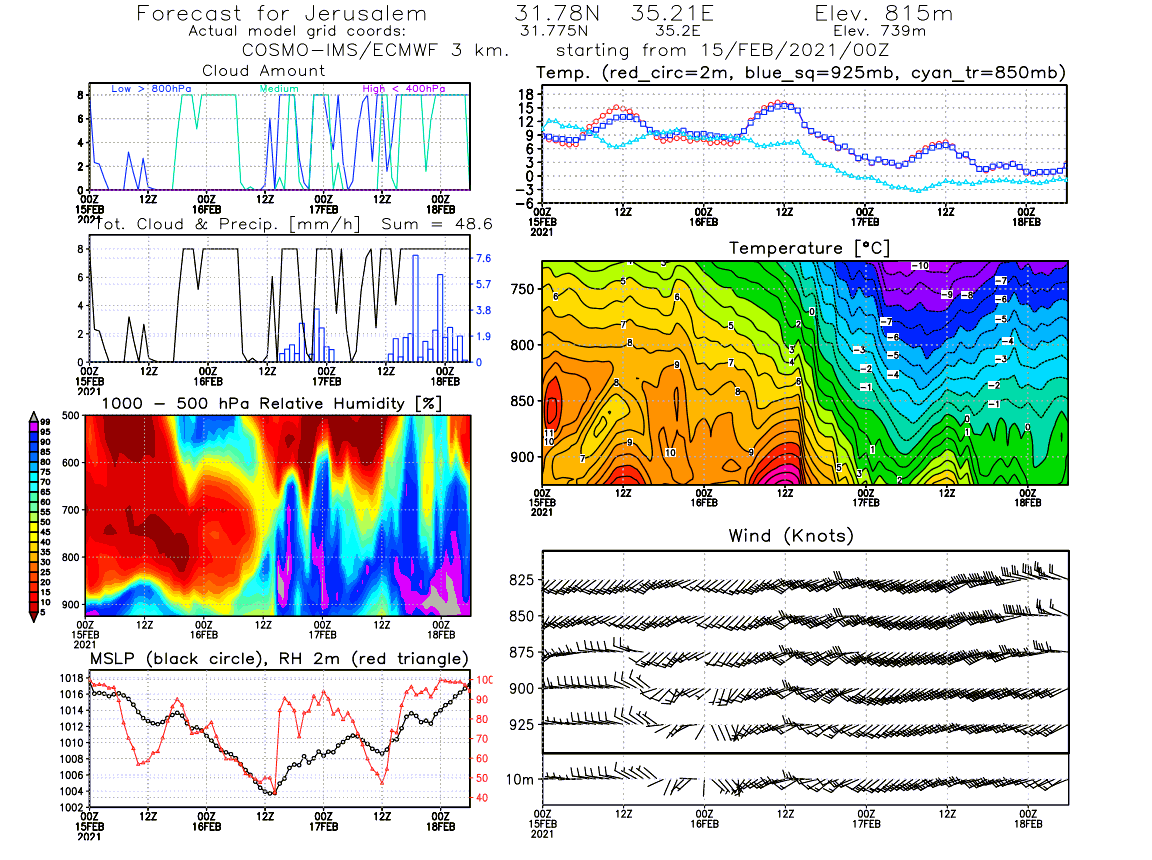 - מטאוגרמה לירושלים (סביב 800 מ') - חלון השלג המשמעותי בליל רביעי-חמישי לפי קוסמו Weather2day