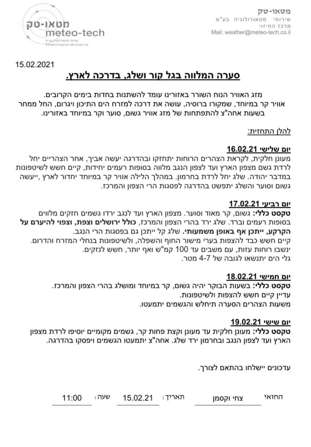 - התראת השירות המטאורולוגי: התראה מיוחדת מפני אירוע מזג אוויר משמעותי Weather2day