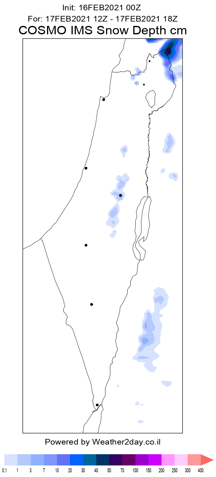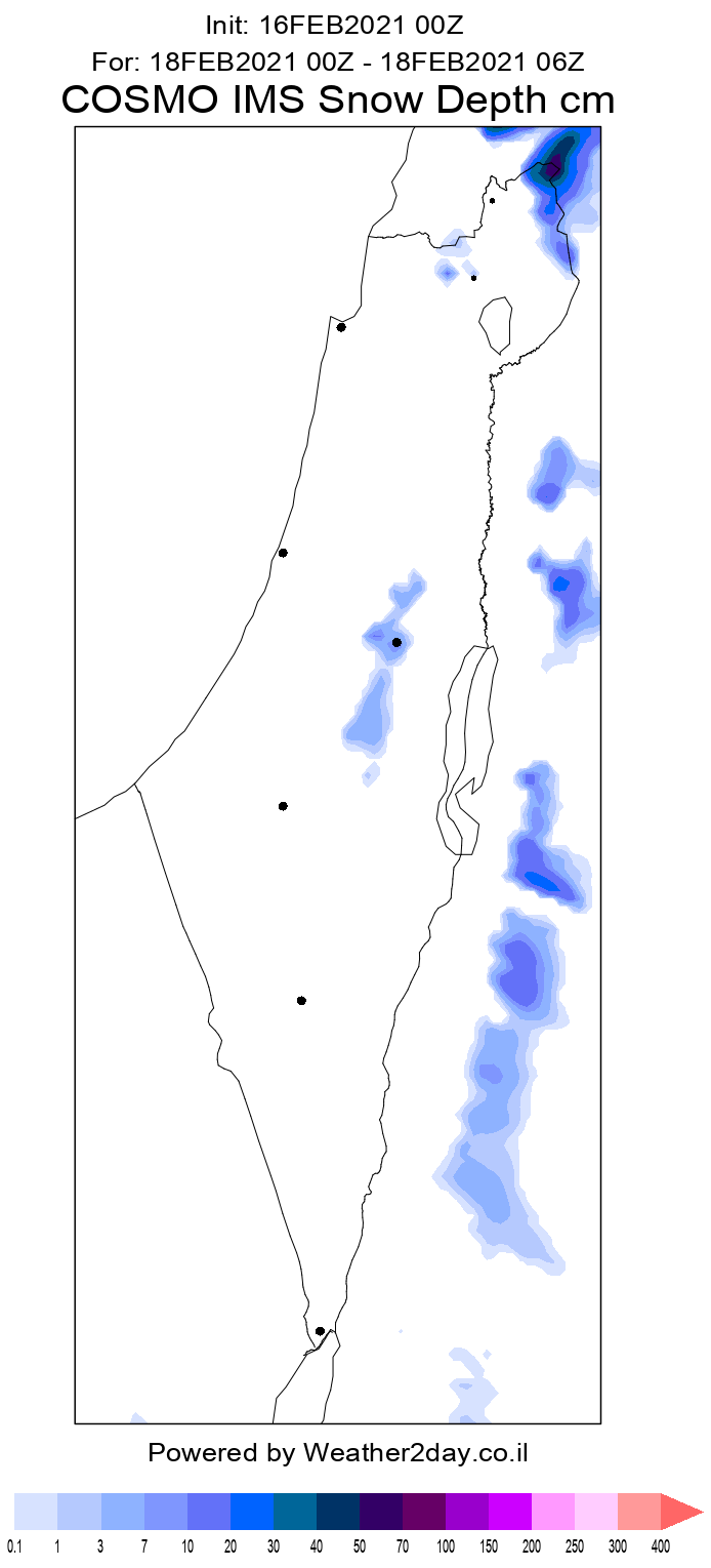 נראה לפי עדכון האחרון של קוסמו הפתעה של ממש בכמויות השלג.