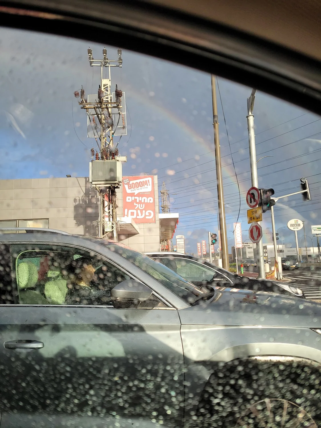 ברד כבד גשם רוחות מטורפות ופתאום צצה שמש לרגע ו... קשת מדהימה