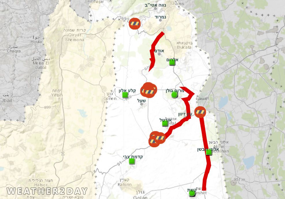 - עדכון חסימות כבישים ברמת הגולן Weather2day