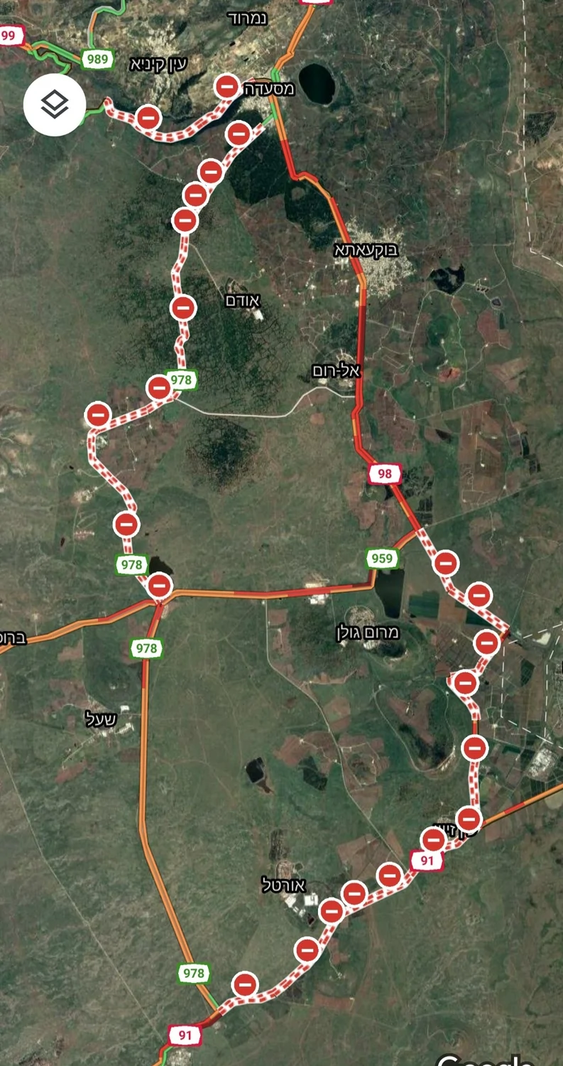 חסימה ציר המפלים לכיוון קשת אלוני הבשן.