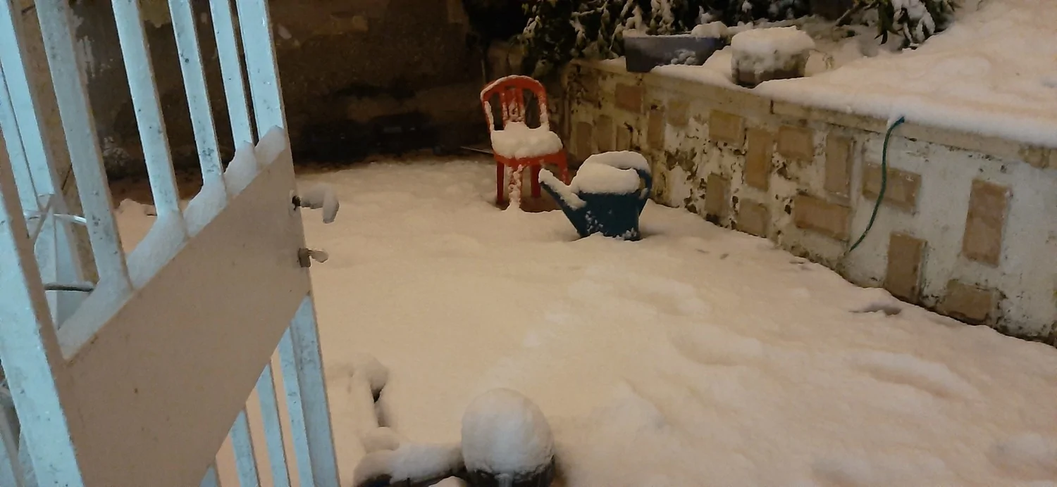 - 0 מעלות. שלג בינוני+ בבית וגן. עד עכשיו נערם 7-8 ס"מ. חבקוק