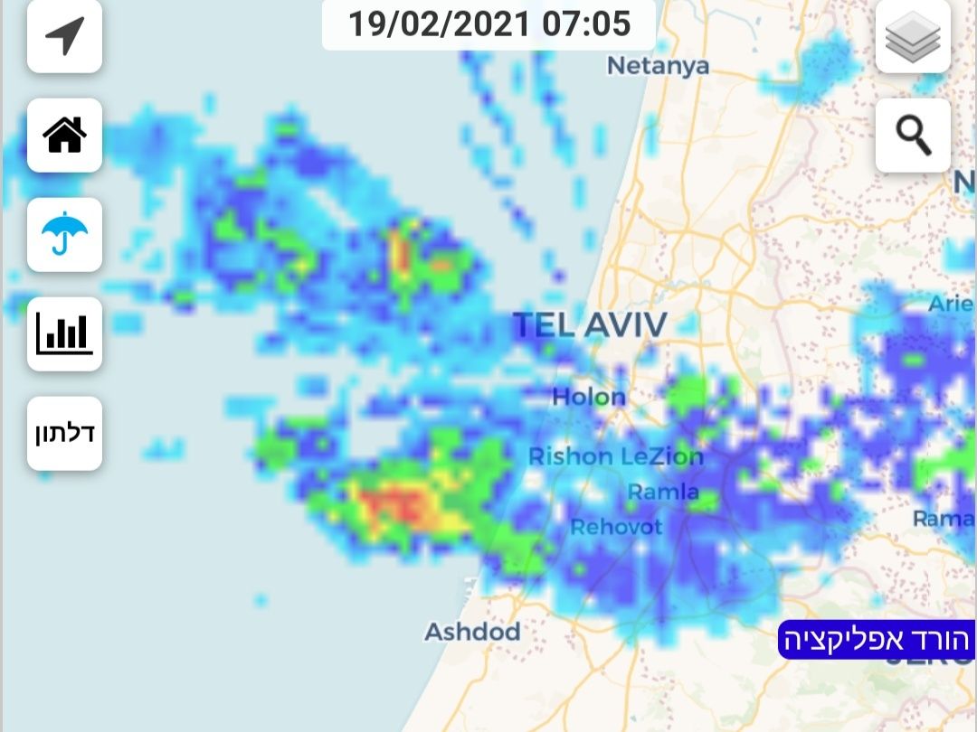 - גשם קל/בינוני לסירוגין בשעתיים האחרונות, בדקות האחרונות מיכל
