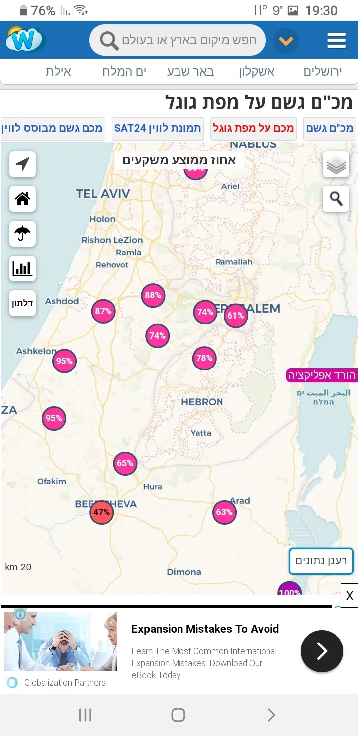 משם מבין "ערימת הדפים" לבחור את מפת הגשם ב-24 השעות האחרונות, כשנכנסים לתחנה מסוימת רואים אחורה כמה ימים